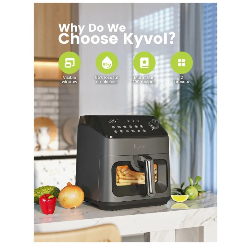 Kyvol AF200W - высокотехнологичная фритюрница которая заботится о вашем здоровье. С помощью высокоскоростной циркуляции раскаленного воздуха AF200W готовит без добавления масла. Это позволяет продуктам сохранить свои полезные свойства, сократить количество жира на 85%. А также значительно уменьшить содержание нитратов в пище. В данной модели вы без труда приготовите куриные крылышки, картошку фри, шашлык, креветки и многое другого.