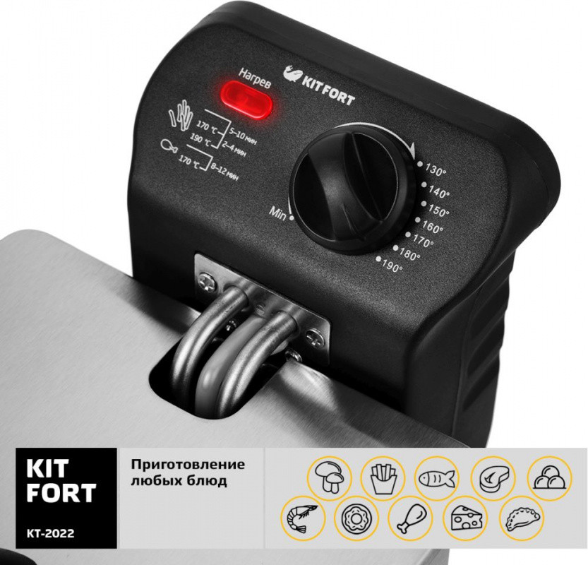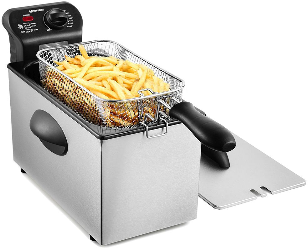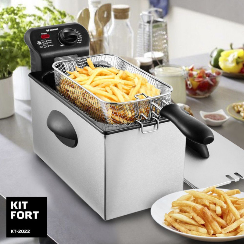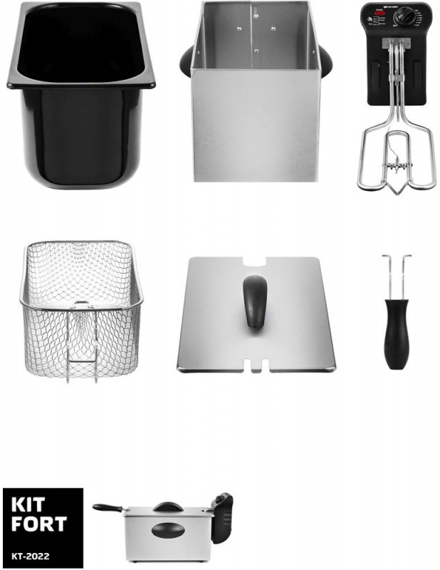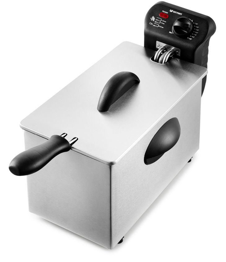 Особенности: Полностью разборная конструкция. Температура приготовления от 130 до 190 градусов. Холодная зона дольше сохраняет масло чистым. Приготовление любых блюд. Емкость чаши: 5,8л. Объем корзины: 1л.