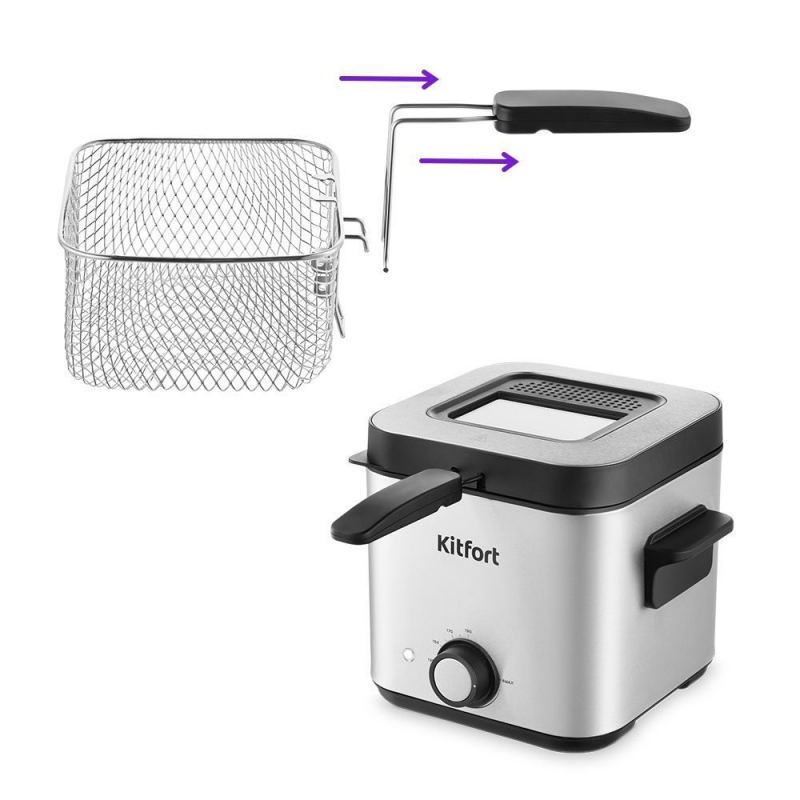 Фритюрница отличается компактностью. Две ручки по бокам прибора позволяют легко переносить фритюрницу. Для удобства хранения корзина для жарки имеет съемную ручку, в разобранном виде корзина и ручка помещаются внутрь фритюрницы.