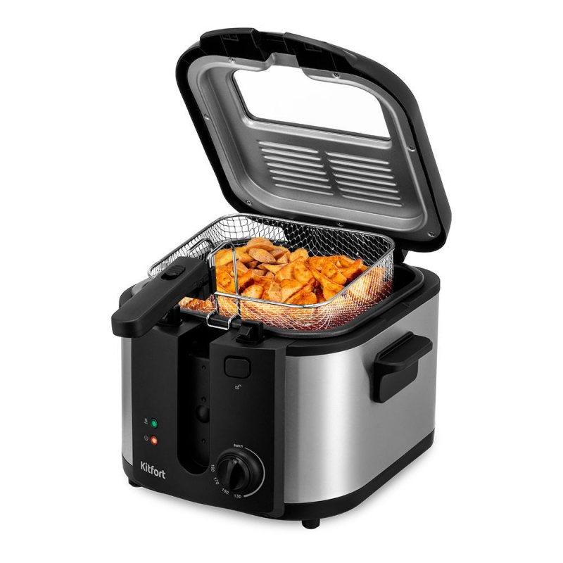 Фритюрница КТ-4076 предназначена для приготовления продуктов в слое горячего масла. Прибор позволит вам приготовить любимые блюда, такие как картофель фри, пончики, чебуреки и куриные крылышки, в домашних условиях. Также можно жарить овощи, рыбу, мясо и морепродукты в кляре и без.