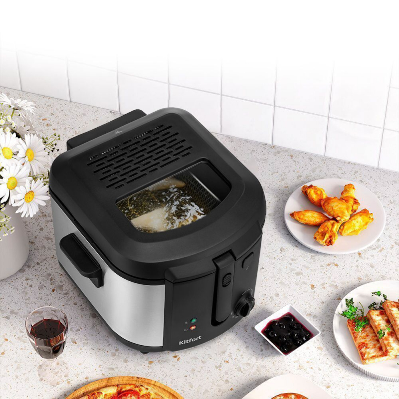 Благодаря достаточно большому объему чаши можно приготовить сразу 3–4 порции. С фритюрницей КТ-4076 вы без труда сможете пожарить закуски на компанию.
