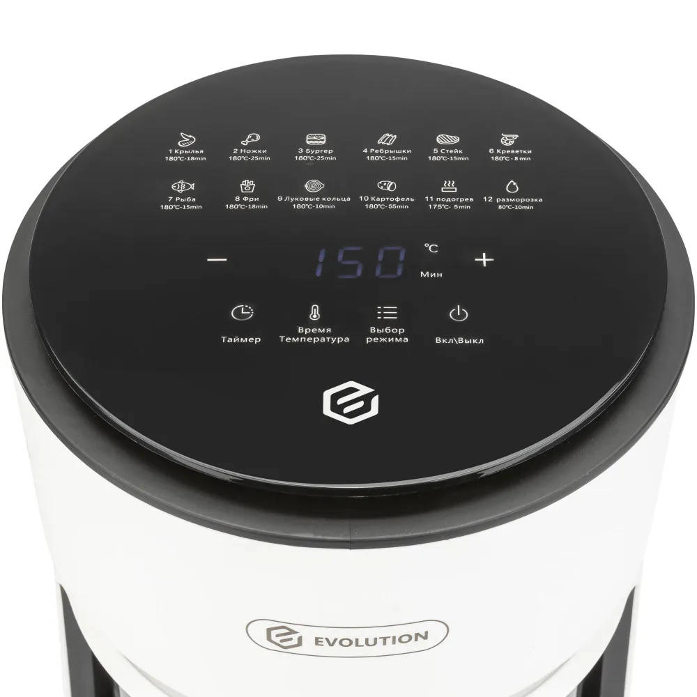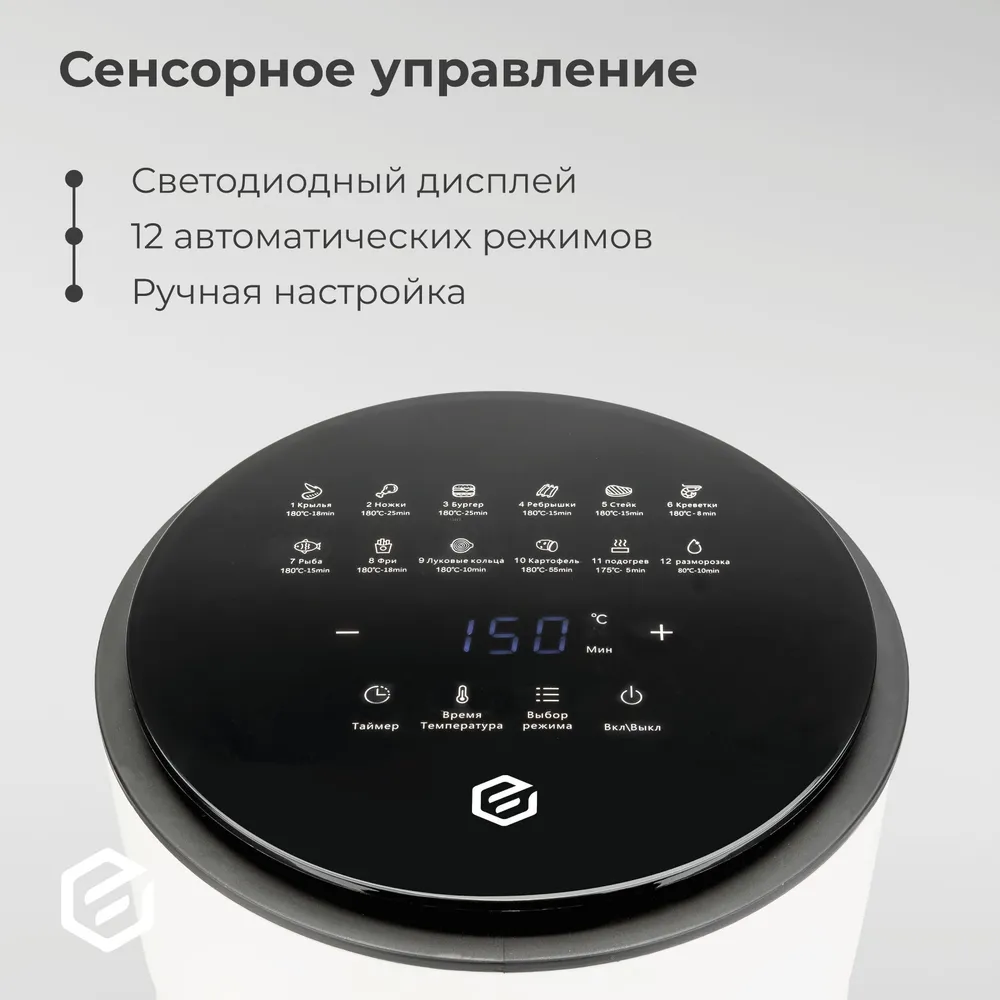 Аэрофритюрница оснащена сенсорным управлением, имеет 12 автоматических программ. Автоматические программы позволяют использовать готовые шаблоны настроек, разработанные под конкретные блюда. Также есть ручная настройка. В инструкции к прибору прилагаются рецепты.