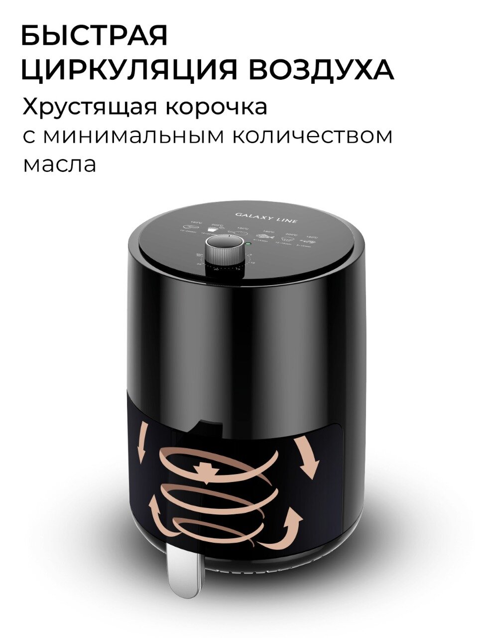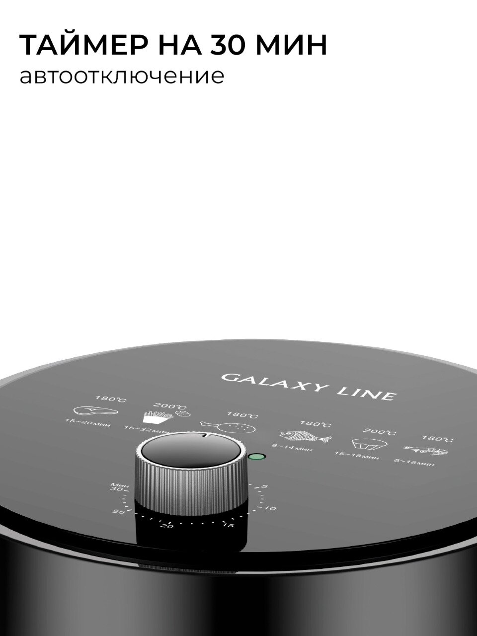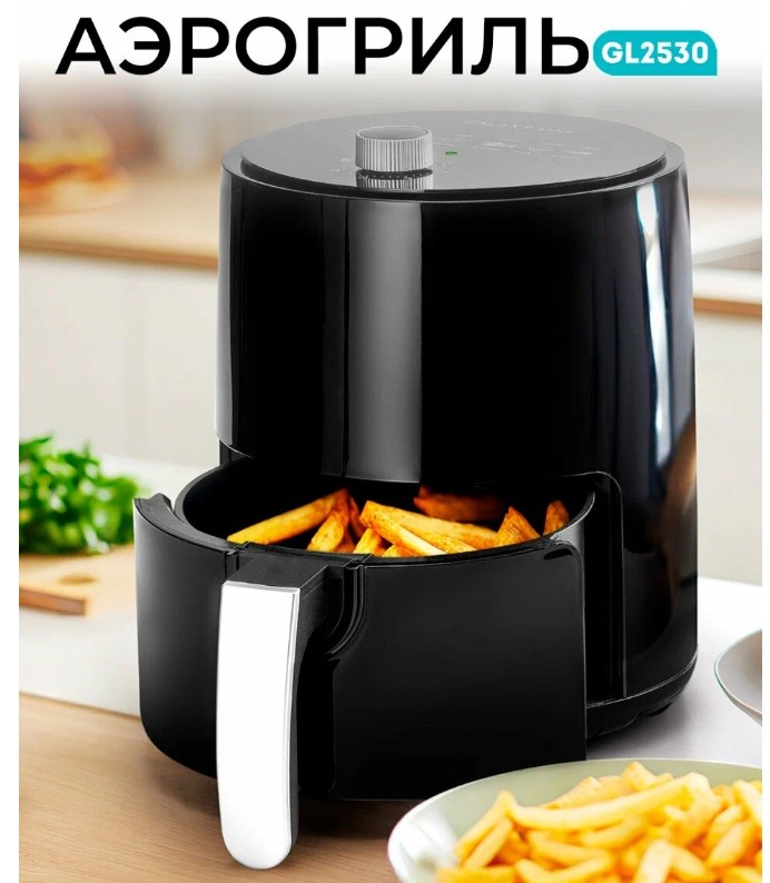 Аэрогриль Galaxy Line GL2530 – это простой способ готовить любимые блюда быстрее, полезнее и без лишних хлопот. Мощность 1400 Вт обеспечивает быстрый нагрев, а система циркуляции горячего воздуха равномерно прожаривает продукты, создавая аппетитную хрустящую корочку. Антипригарная чаша и решётка не дают пище пригорать, упрощая уход, а таймер на 30 минут позволяет не стоять у плиты – техника всё сделает сама. Вдохновение для новых гастрономических экспериментов найдётся в книге рецептов, которая идёт в комплекте.