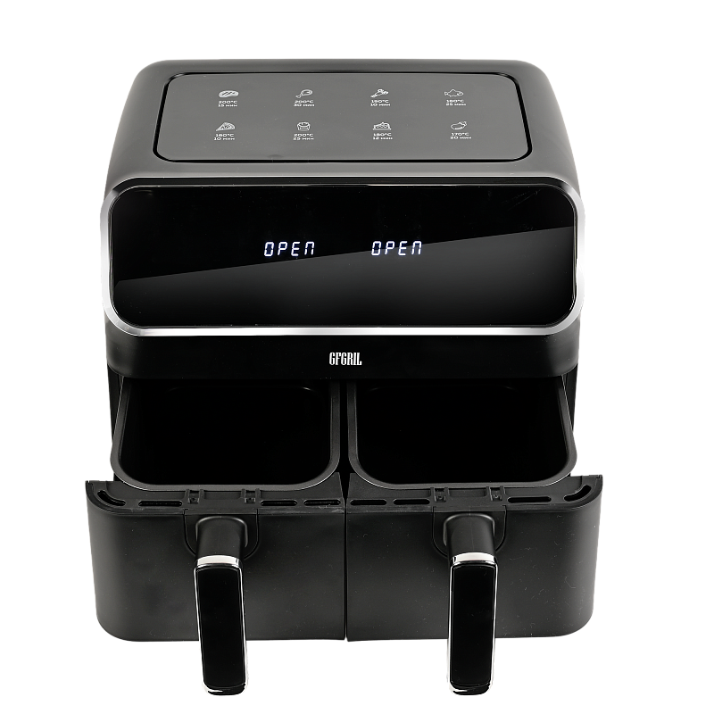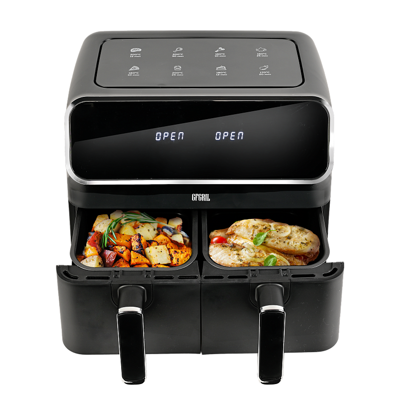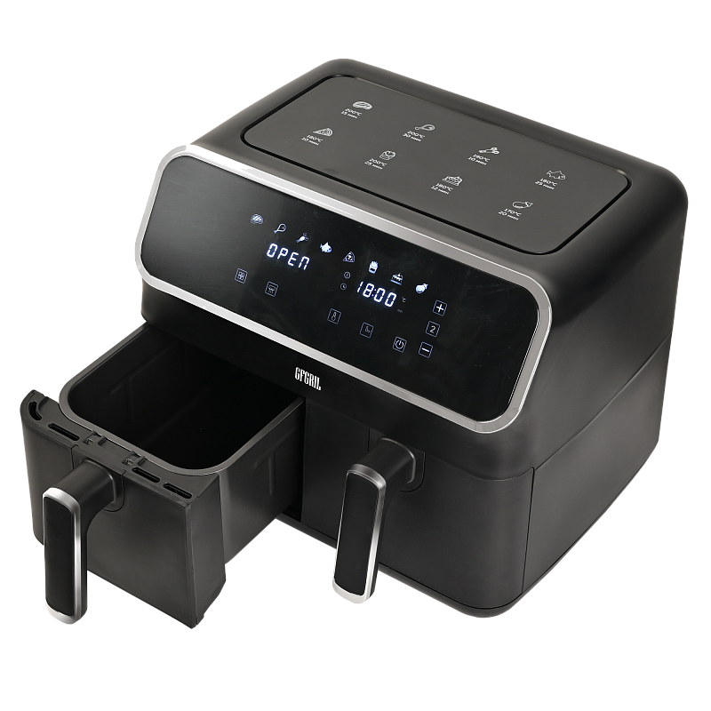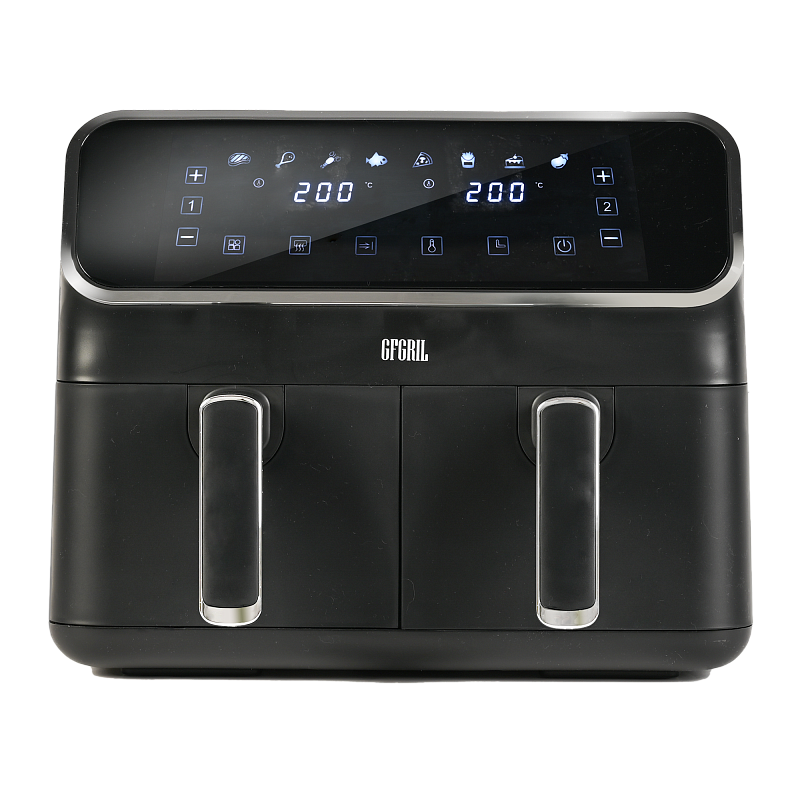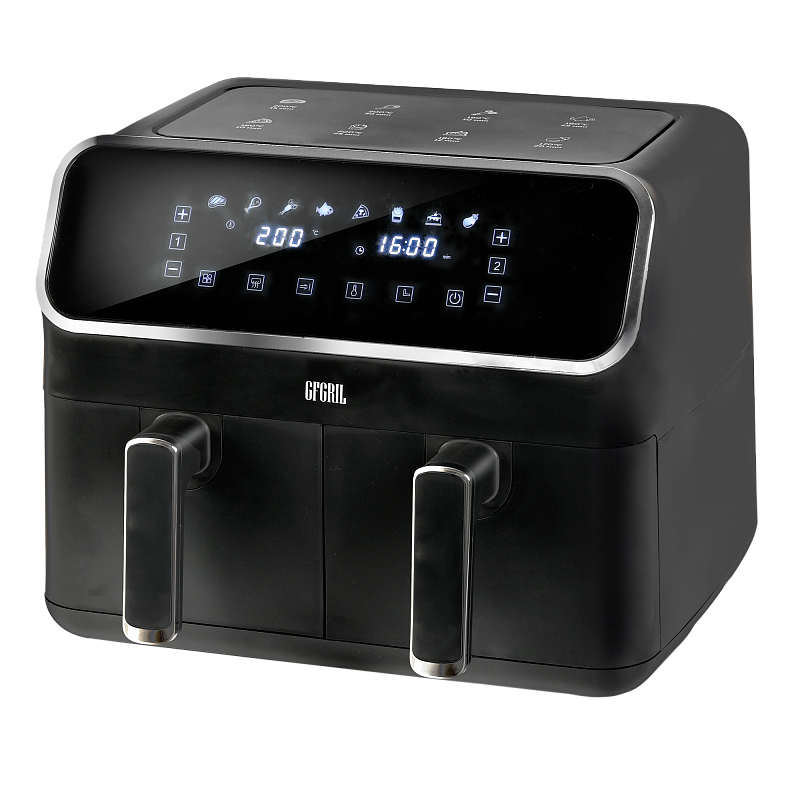 Многофункциональный аэрогриль с двумя чашами GFA-8000 – это универсальное устройство для тех, кто не хочет тратить много времени на приготовление пищи, но хочет питаться вкусно и полезно. Электрический аэрогриль GFA-8000 заменит сразу несколько бытовых приборов, таких как мини-печь, электрический гриль, фритюрница, духовка, СВЧ, дегидратор. А благодаря 2м чашам по 4 л каждая, Вы сможете приготовить несколько блюд одновременно - курицу гриль, стейки, морепродукты, большую порцию картофеля фри или другого гарнира, приготовить выпечку или другие разнообразные блюда для всей семьи.