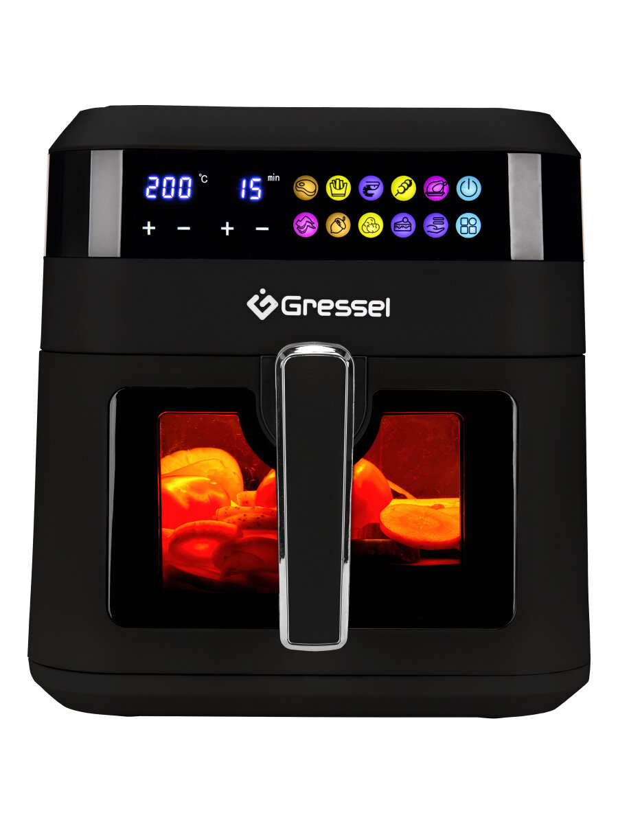 9 программ приготовления еды + 1 пользовательская: «Стейк», «Картофель фри», «Морепродукты», «Шашлык», «Курица», «Куриные крылья», «Орехи», «Картофель», «Пирог» (выпечка), «Пользовательская», Яркий цветной дисплей - уже готовые программы приготовления. 9 программ приготовления еды + 1 пользовательская: «Стейк», «Картофель фри», «Морепродукты», «Шашлык», «Курица», «Куриные крылья», «Орехи», «Картофель», «Пирог» (выпечка), «Пользовательская»