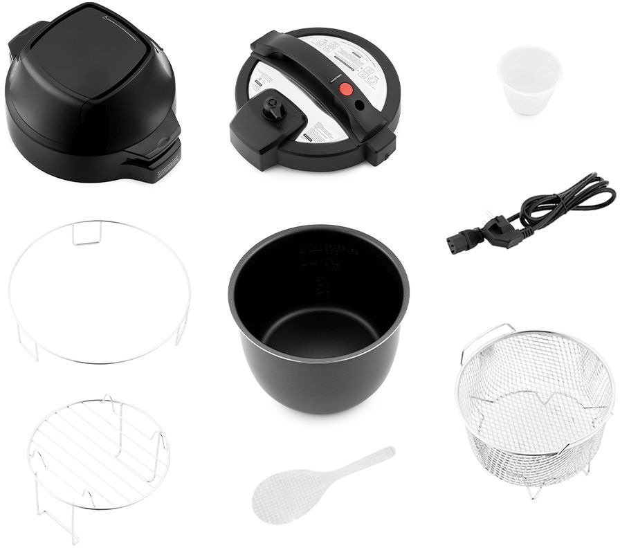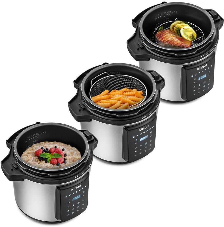 Формы для готовки: Ёмкость чаши скороварки 6 л. Ёмкость корзины аэрогриля 2,8 л