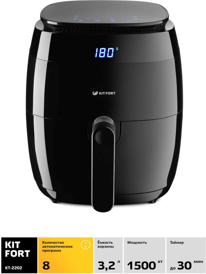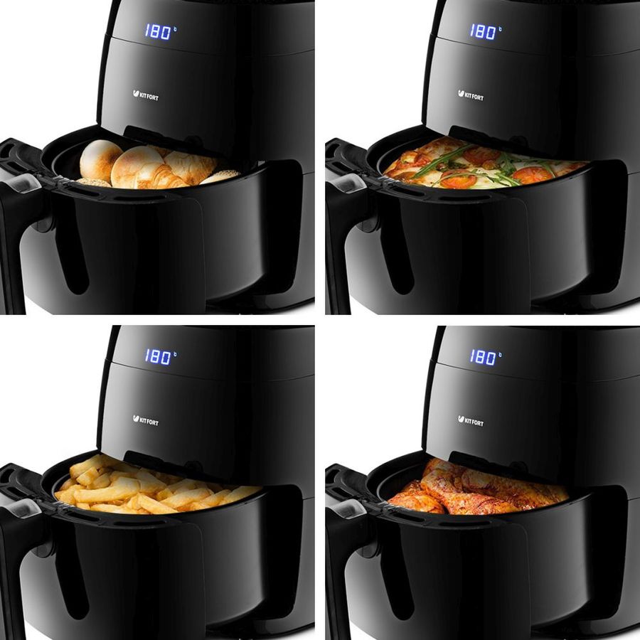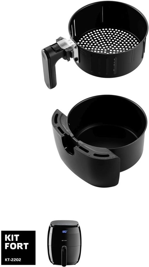 Описание: Современный аэрогриль Kitfort KT-2202 замечателен не только стильным дизайном. Он может использоваться как аэрогриль, а также как аэрофритюрница и духовка, и позволяет готовить большинство продуктов без добавления масла.