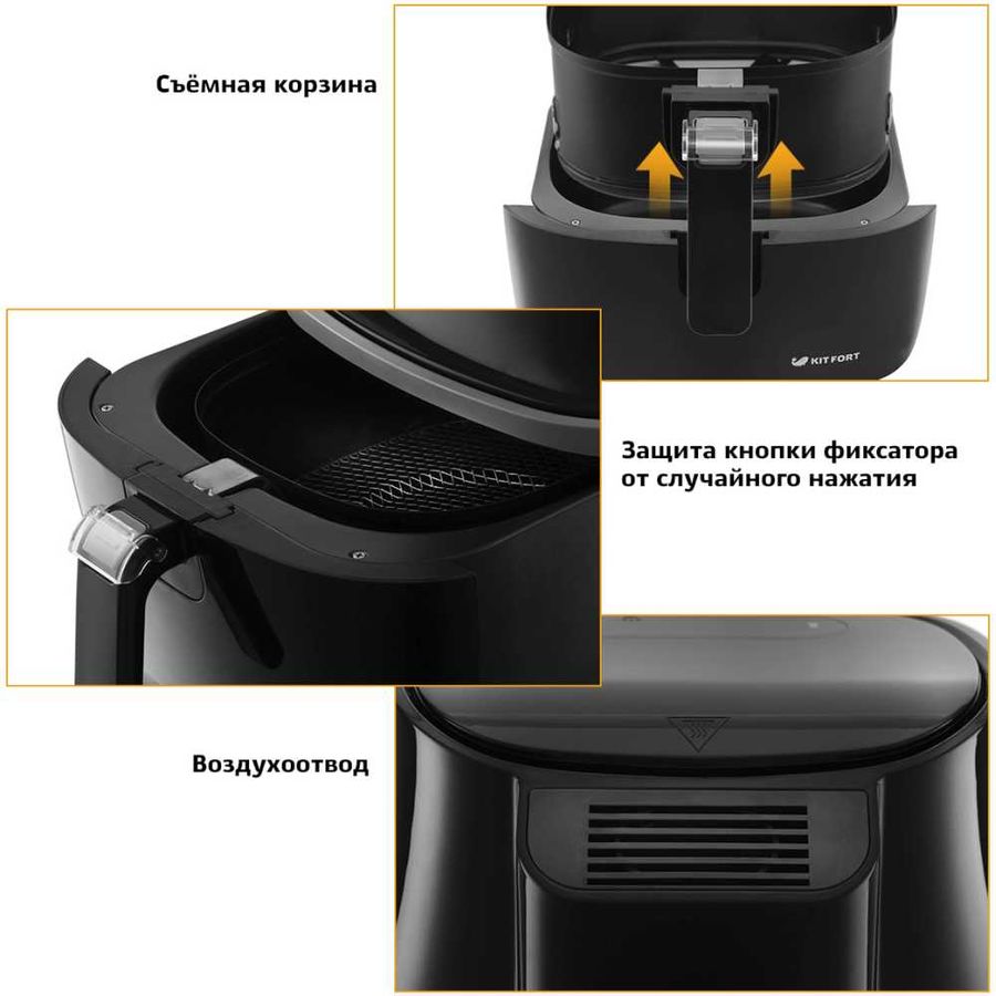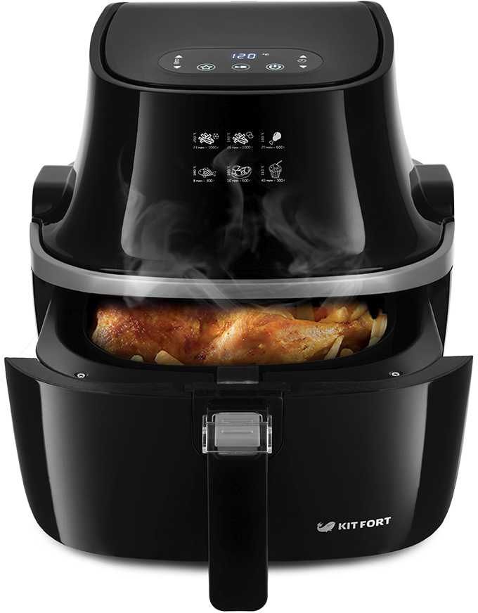 Описание: Может использоваться как аэрогриль, аэрофритюрница и духовка, позволяет готовить большинство продуктов без добавления масла. При помощи системы циркуляции горячего воздуха продукты равномерно обжариваются со всех сторон и получаются нежными внутри и с хрустящей корочкой снаружи. Аэрогриль оснащен электронным управлением и дисплеем. Продукты готовятся в специальной корзине, которая вставлена в поддон с антипригарным покрытием. По окончании приготовления аэрогриль автоматически отключается. Поддон с корзиной легко вынимаются и моются.
