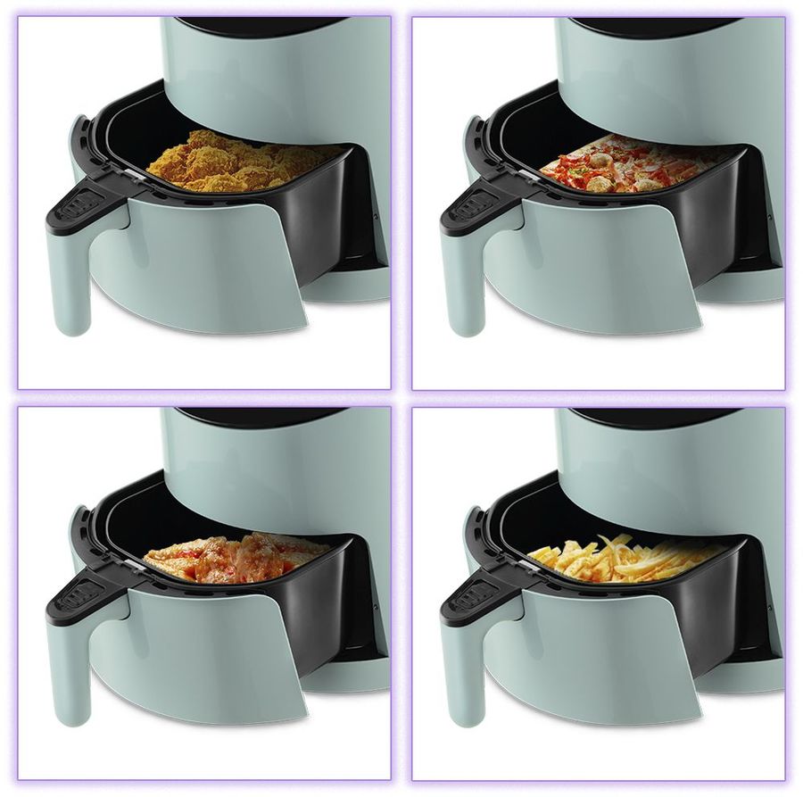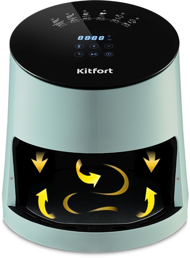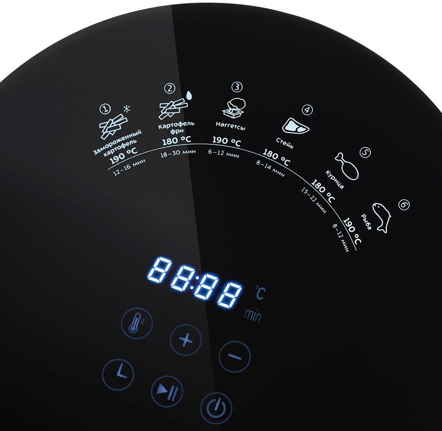 Описание: Аэрогриль, аэрофритюрница и духовка. Позволяет готовить большинство продуктов с минимальным количеством масла или без него. Благодаря системе циркуляции горячего воздуха, продукты обжариваются равномерно со всех сторон, получаясь при этом нежными внутри и с хрустящей корочкой снаружи. Съёмный поддон и корзина имеют антипригарное покрытие, благодаря чему они легко чистятся после использования, а блюда можно готовить практически без добавления масла.
