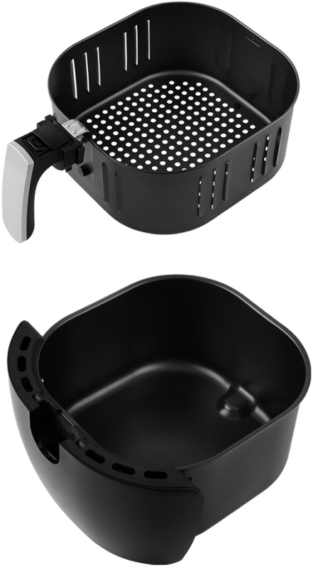 Съёмный поддон и корзина имеют антипригарное покрытие, благодаря чему они легко чистятся после использования, а блюда можно готовить практически без добавления масла.