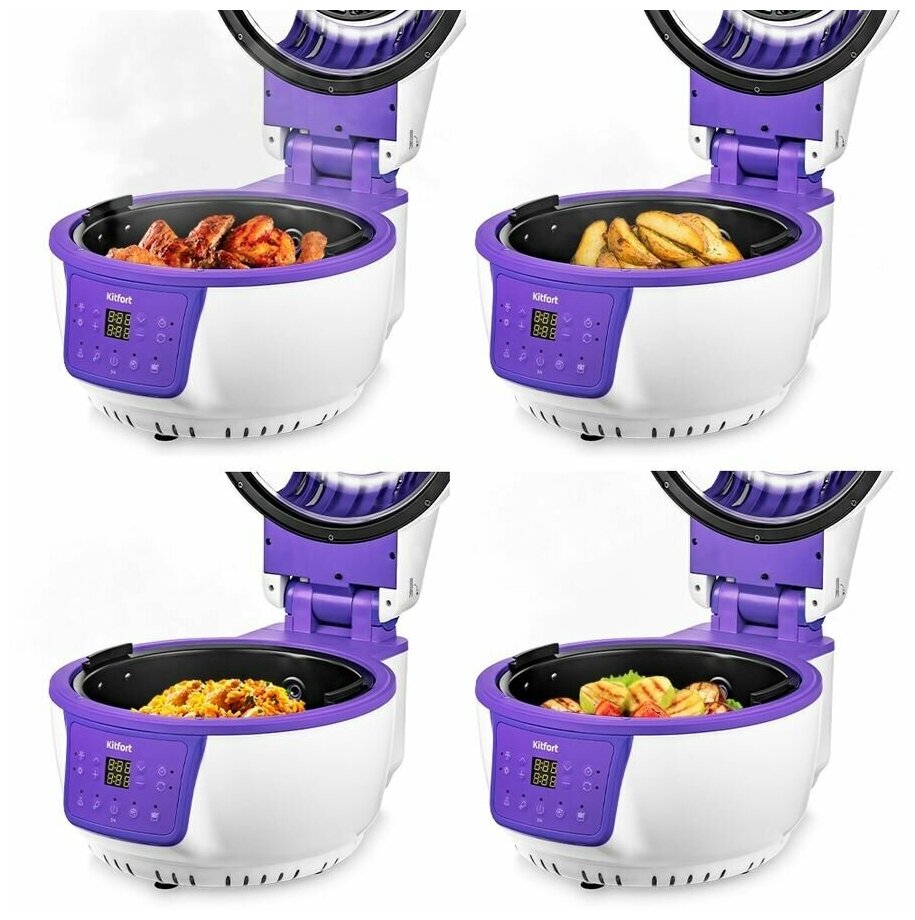 - БрэндKITFORTМодельКТ-2242Мощность1200 - 1400 ВтОбъем чаши7.5 лТемпература50 - 230°СТип нагревательного элементаТЭНТип управленияэлектронноеАнтипригарное покрытие нагревательных частейестьАнтипригарное покрытиетефлоновоеСъемные формыестьФормы для готовкивертел, решетка, корзина, решетка для стейков, противень, шампуры с держателямиКоличество программ/режимов5Список режимов/программ приготовленияпирог, курица-гриль, пицца, чипсы