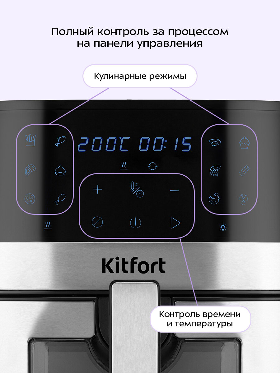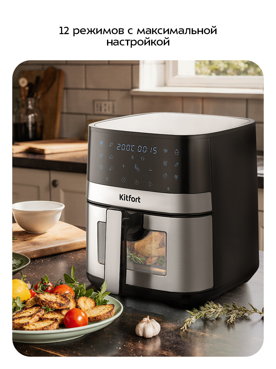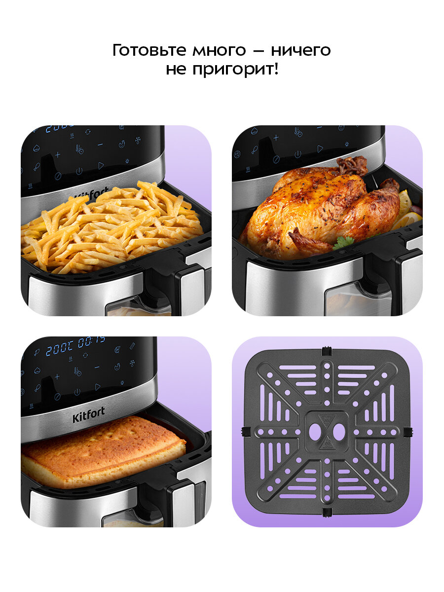 КТ-2277 – это отличное решение, если вы предпочитаете питаться не только вкусно, но и с пользой для своего организма. 12 режимов готовки сделают рацион разнообразным, а чтобы еда оставалась мягкой с золотистой корочкой – встроена функция «Перемешивание».