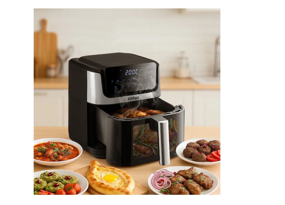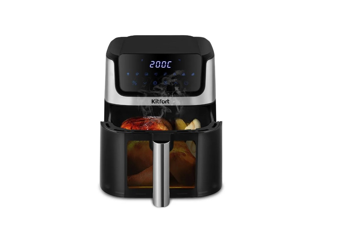Современный аэрогриль КТ-2284 помогает в ежедневной готовке, беря на себя процесс выпечки, запекания или разморозки. А главный плюс – вам практически не понадобится масло, ведь аэрогриль использует систему обдува горячим воздухом.
