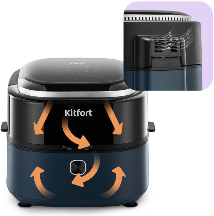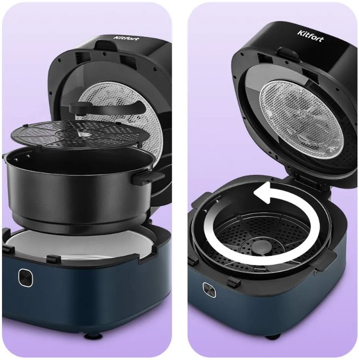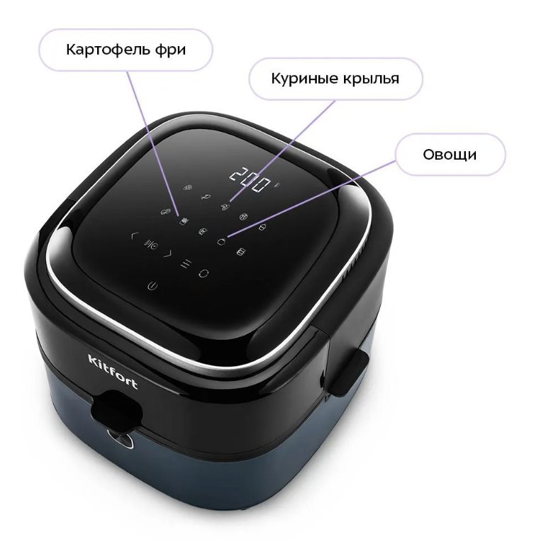 Главный плюс аэрогриля КТ-2294 – в том, что от вас требуется лишь загрузить в чашу продукты, выбрать режим и дождаться приготовления вкусных крыльев, пиццы, овощей или картофеля фри.