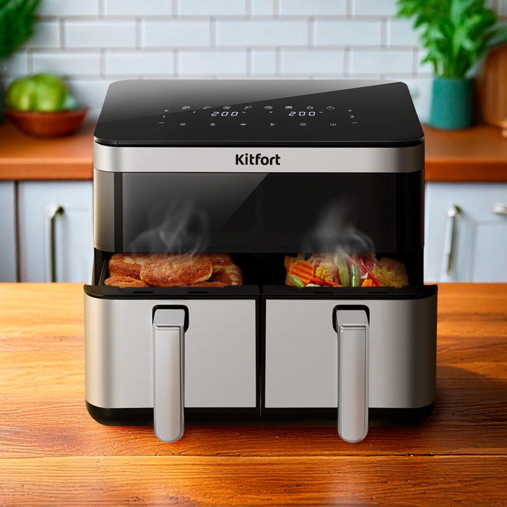 Аэрогриль КТ-8110 — это устройство, которое позволяет готовить разнообразные продукты без использования масла, сохраняя их сочность и придавая аппетитную хрустящую корочку. Благодаря аэрогрилю, вы можете наслаждаться вкусными блюдами без лишних жиров.