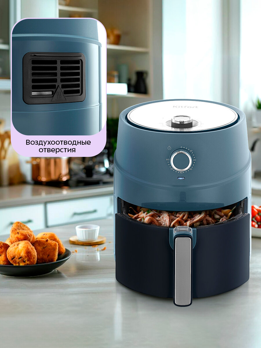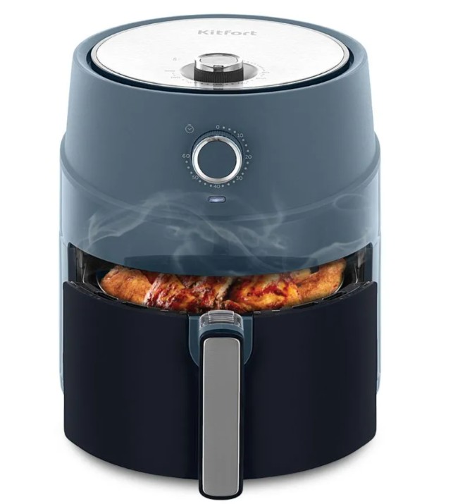 Современный аэрогриль КТ-8118 позволяет готовить большинство продуктов без добавления масла, при этом они получаются сочными и с хрустящей корочкой, главное правильно подобрать время приготовления.