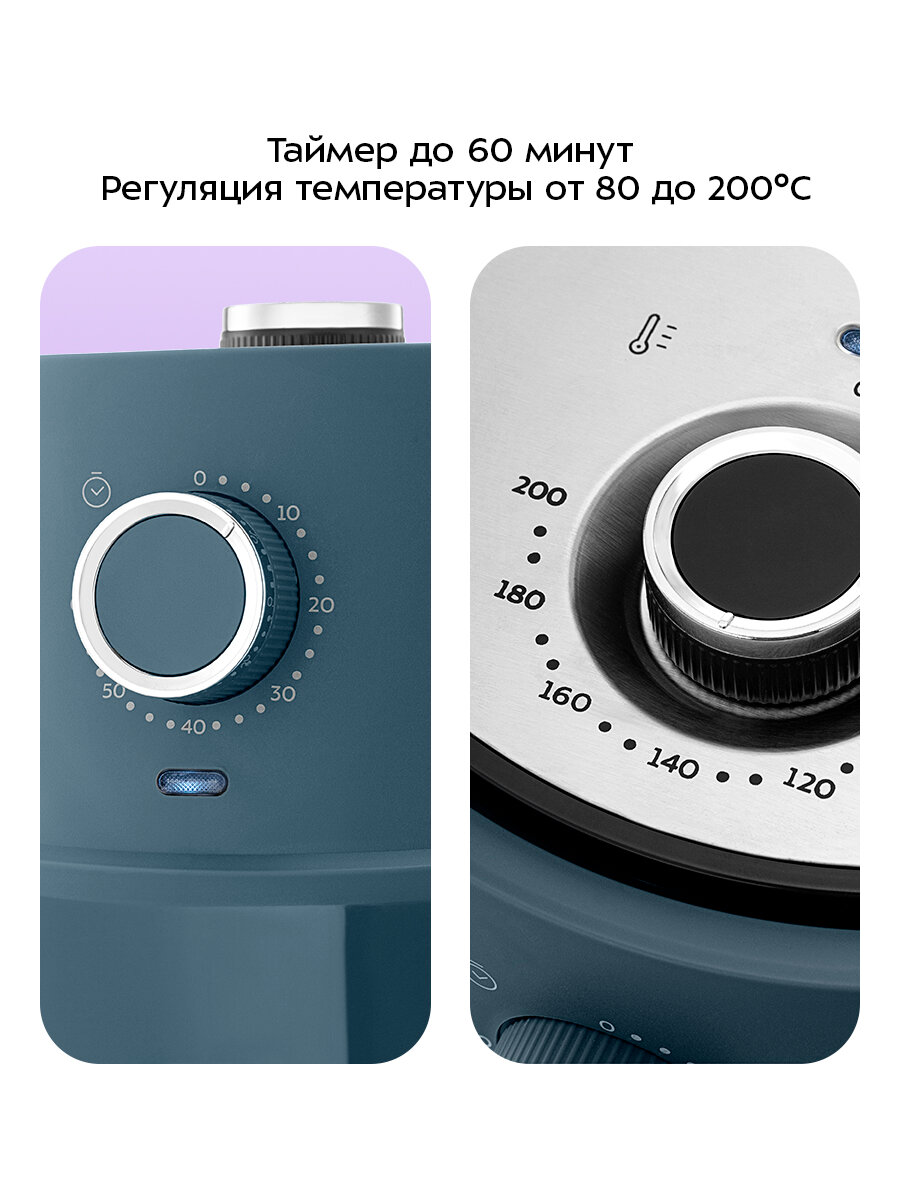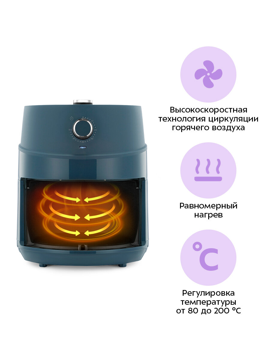 При помощи системы циркуляции горячего воздуха продукты равномерно обжариваются со всех сторон и получаются нежными внутри и хорошо запечёнными снаружи. Продукты практически не пригорают, а сам процесс готовки не требует постоянного присутствия на кухне.