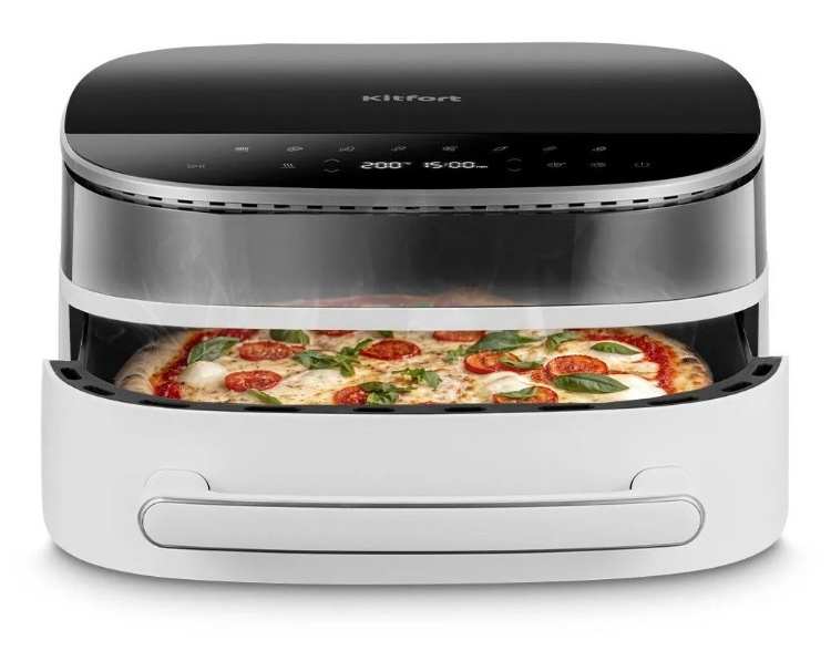 Современный аэрогриль КТ-8150 позволяет готовить большинство продуктов без добавления масла, при этом они получаются сочными и с хрустящей корочкой. Также данная модель может использоваться как сушилка для овощей и фруктов.