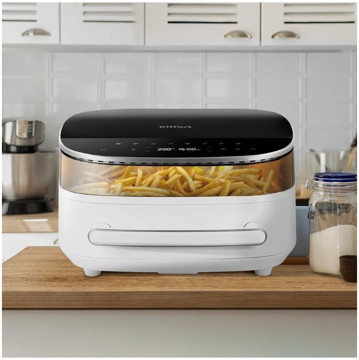 Аэрогриль КТ-8150 имеет оригинальную форму и лаконичный дизайн. Он отлично впишется в вашу кухню, а благодаря небольшому размеру не займёт много места на вашей кухне. Через смотровое окно вы можете контролировать процесс приготовления.