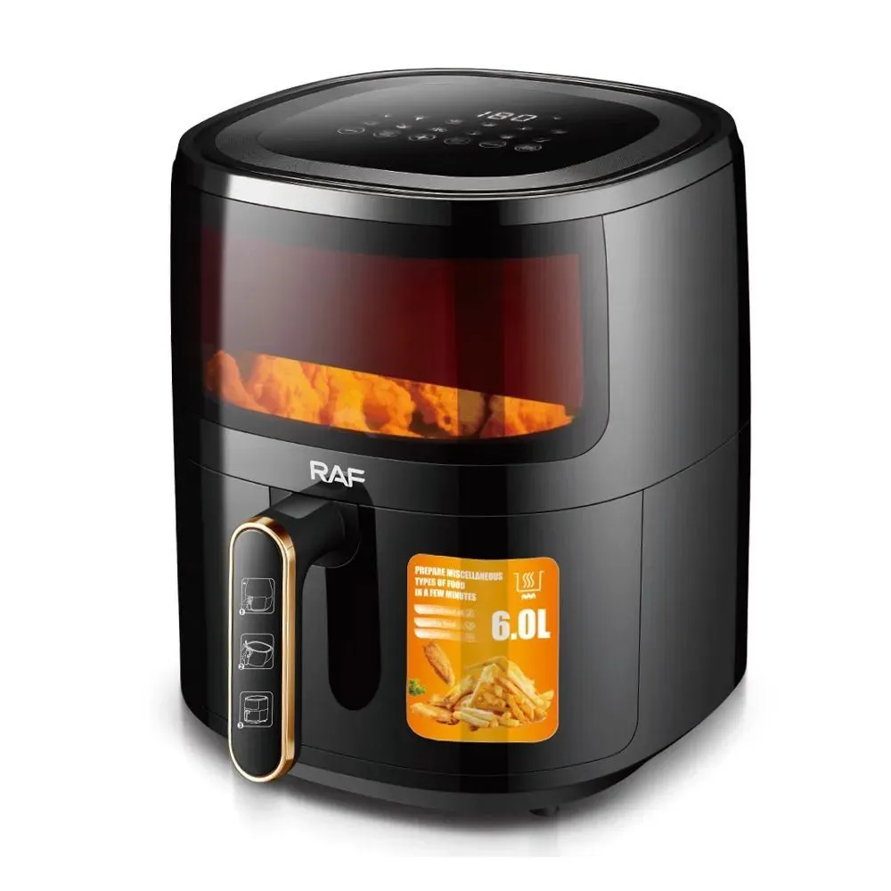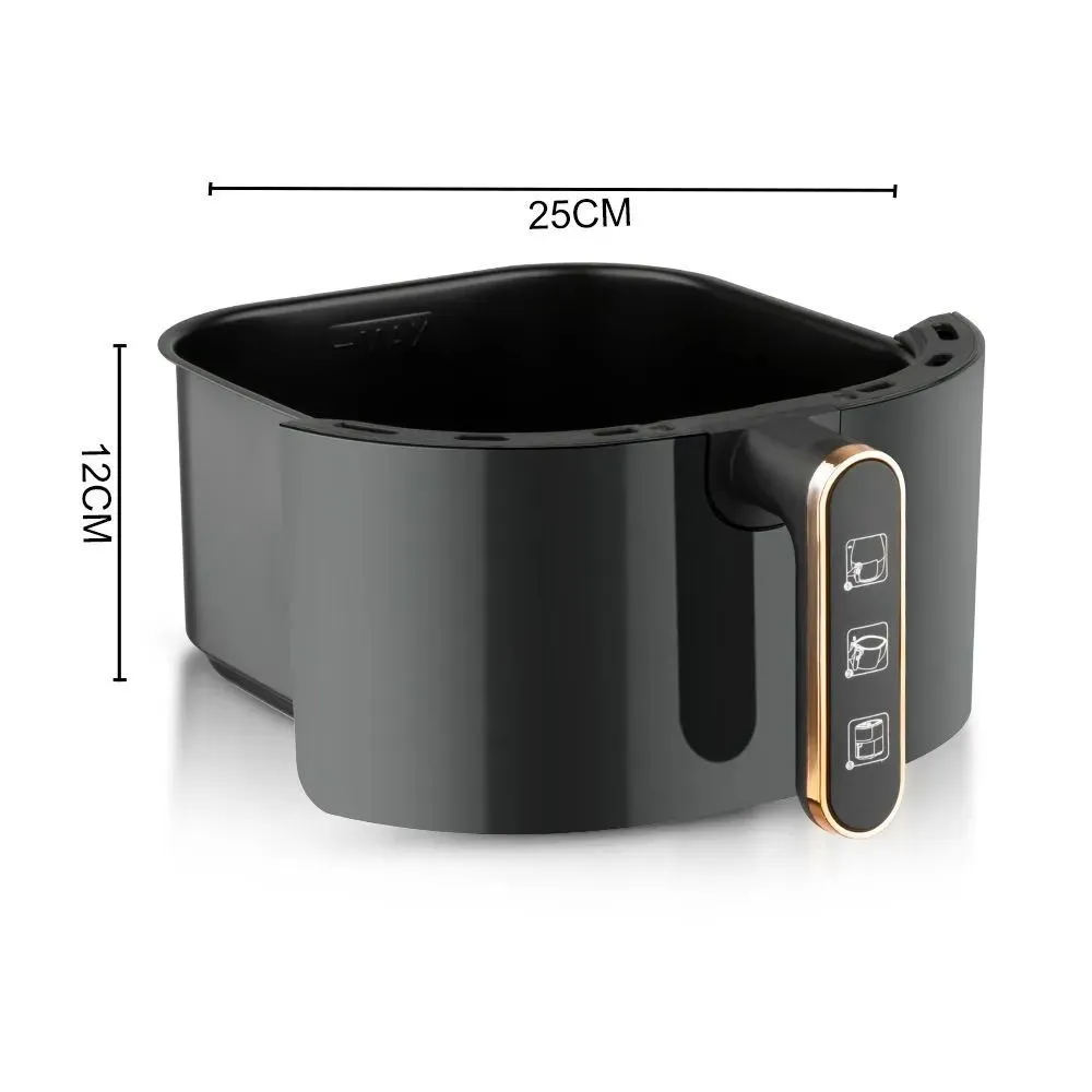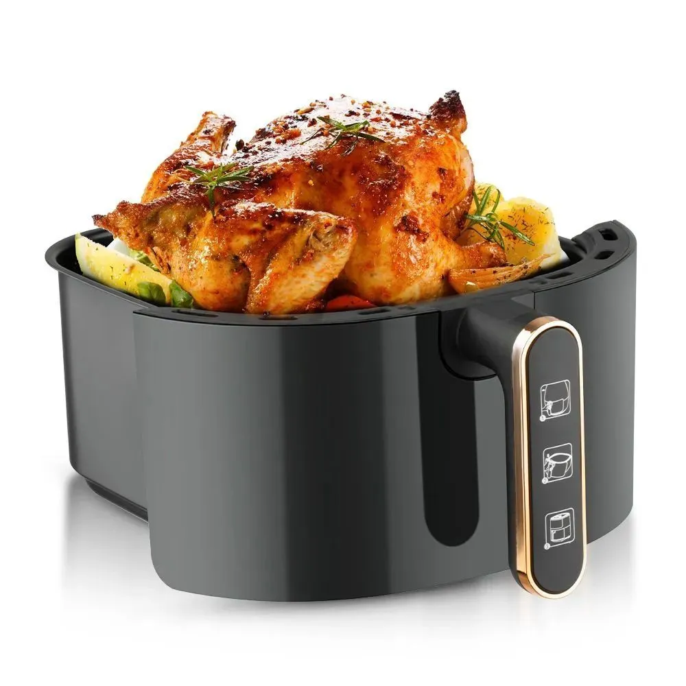 Visual Air Fryer - это бытовой кухонный прибор, использующий технологию циркуляции горячего воздуха для приготовления пищи без использования большого количества жира. Отсутствие вращения означает, что пища равномерно нагревается в процессе приготовления без необходимости ее переворачивать или перемешивать.