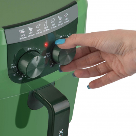 Обжаривание продуктов циркулирующим горячим воздухом без использования масла, Равномерная конвекция для лучшей прожарки, Автоматическое отключение, Регулировка температуры и времени приготовления, Защита от перегрева, Таймер до 30 минут, Прорезиненные ножки – удобство и безопасность, Многофункциональный и универсальный, Контейнер с антипригарным покрытием обеспечивает легкий уход, Индикатор работы
