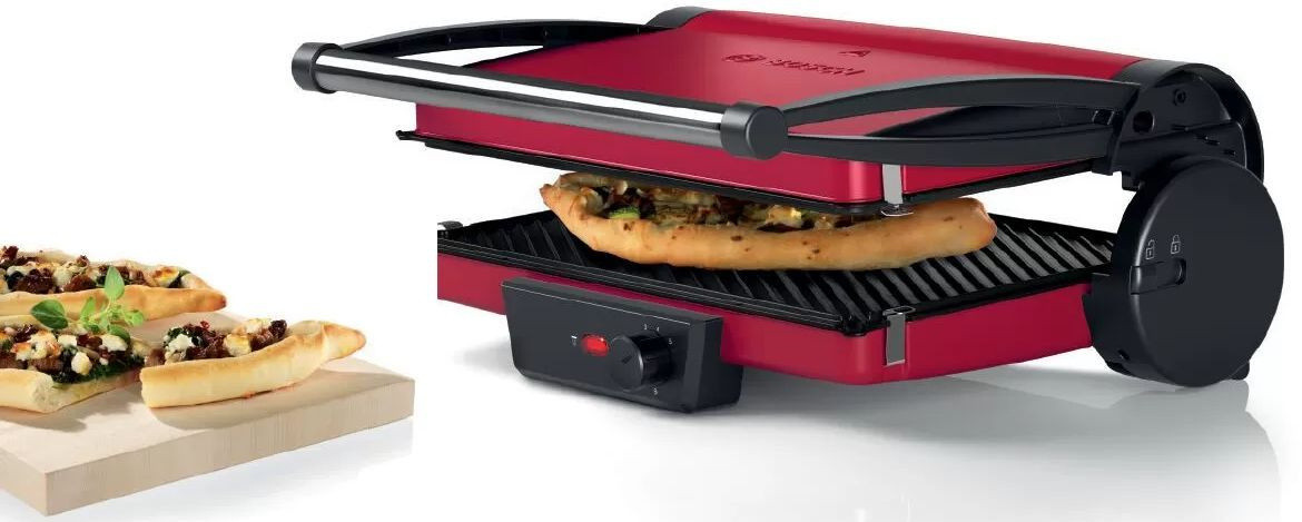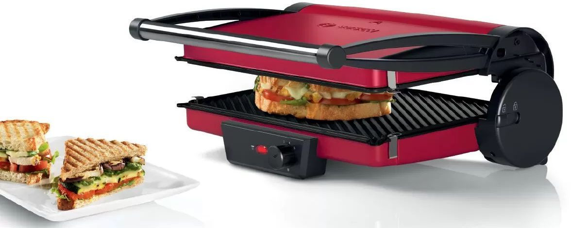 Гриль Bosch TCG4104 — компактная модель мощностью 2000 Вт быстро нагревается и поддерживает выбранную температуру. Конструкция обеспечивает стекание жира по стокам, что позволит готовить малокалорийные блюда. Благодаря подвижной верхней панели можно поджаривать толстые куски.