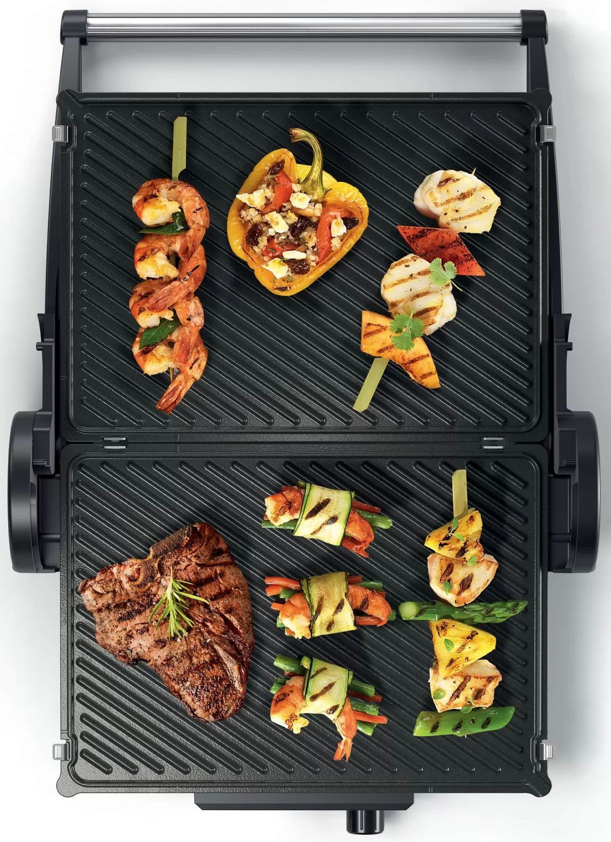 Съемные алюминевые пластины для гриля с антипригарным покрытием можно мыть в посудомоечной машине