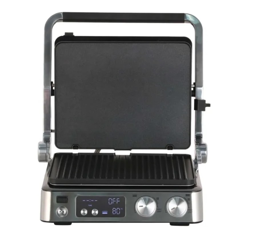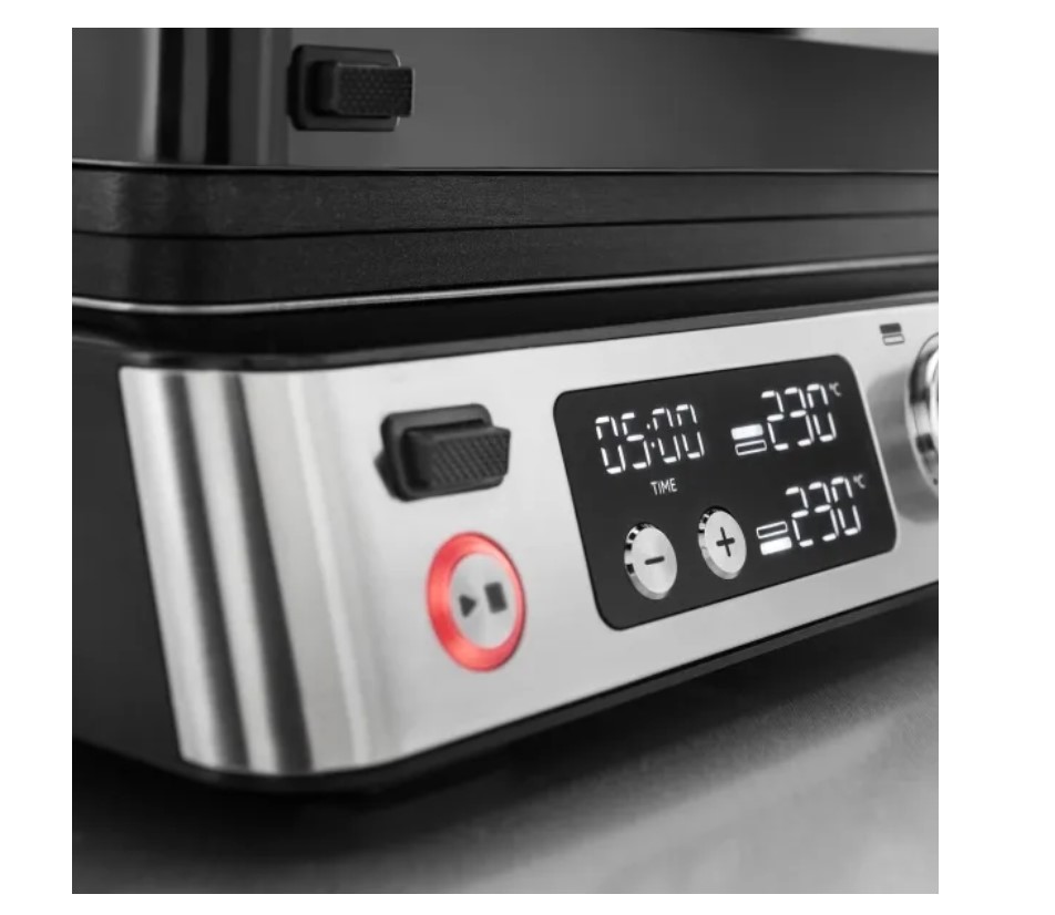 Мощность: 2000 Вт. Три режима приготовления. 1 пластина гриль; 1 плоская пластина; 2 пластины для приготовления вафель. Лопатка. Регулируемый термостат. ЖК дисплей.
