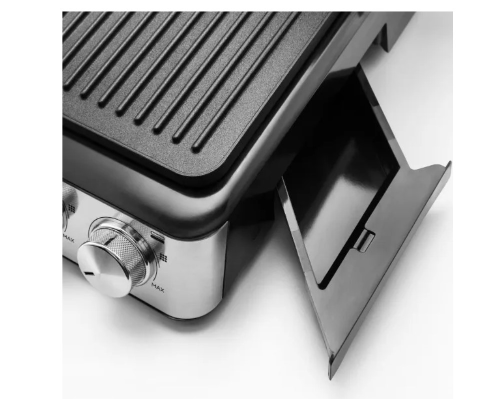 MultiGrill CGH923D — это высококачественный электрический гриль, обеспечивающий безупречное приготовление пищи. 3 типа съемных пластин, каждая из которых оснащена встроенным нагревательным элементом, позволяют идеально готовить любые блюда с предельной точностью даже при самых высоких температурах. От вкуснейшего мяса до рыбы, овощей и сыра, поджаренных бутербродов и десертов, таких как вафли, MultiGrill упрощает приготовление целого ряда рецептов, каждый раз обеспечивая превосходный результат. Откройте гриль, чтобы удвоить поверхность для приготовления пищи. Идеально подходит для одновременного приготовления мяса и овощей по отдельности, габариты рабочей поверхности: 29x23 см. После открытия удваивается:29x46 см