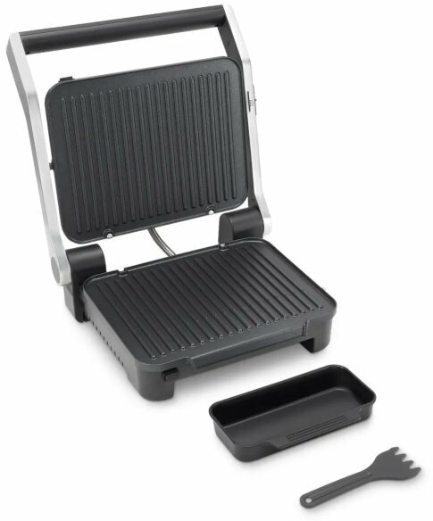Регулировка времени приготовленияавтоРегулировка температуры приготовленияавтоИнформационный дисплейестьЛоток для сбора жираестьИндикатор включенияестьИндикатор нагреваестьЗвуковой сигналестьНенагревающаяся ручкаестьРаскрытие на 180 градусовестьОсобенностиВерхняя крышка имеет «плавающий» фиксатор и адаптирует свое положение под любой продукт с максимальным касанием к панели нагрева.Корпус