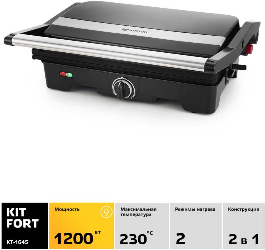 Описание: С помощью электрогриля Kitfort KT-1645 можно приготовить мясо, рыбу, сосиски-гриль, бутерброды, панини, сэндвичи, гренки, тосты и многое другое. Ребристая поверхность и высокая температура панелей способствуют быстрому приготовлению и появлению характерного «полосатого» рисунка на продуктах. Конструкция гриля позволяет готовить в двух режимах. В двухстороннем режиме он закрывается крышкой, и продукты готовятся одновременно с двух сторон. В одностороннем режиме крышка гриля откидывается на 180°, и гриль превращается в большую жаровню. Для приготовления можно использовать обе поверхности.
