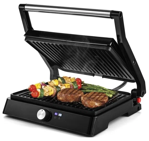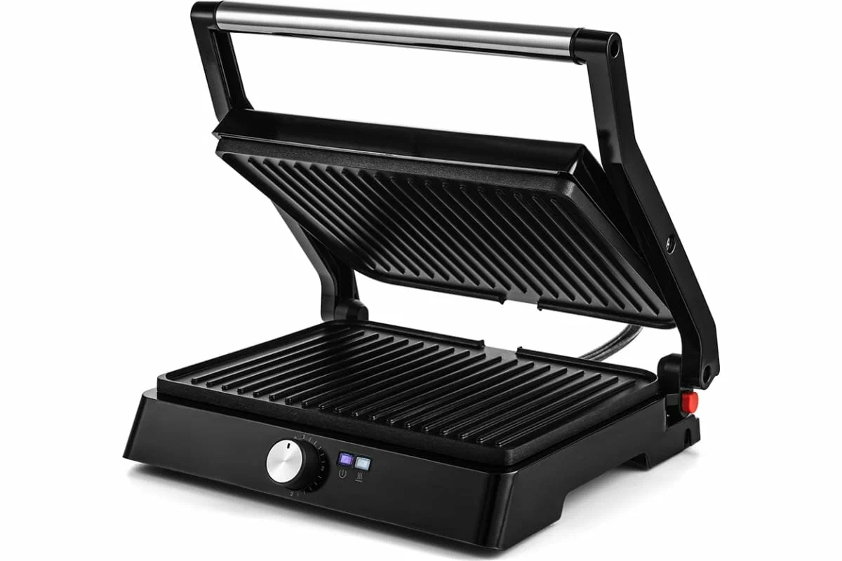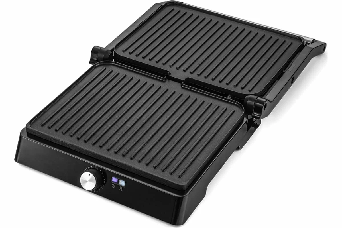 антипригарное покрытие, крышка, поддон для сбора жира, Раскрытие на 180°, раскрытие на 180°, съемная жарочная поверхность