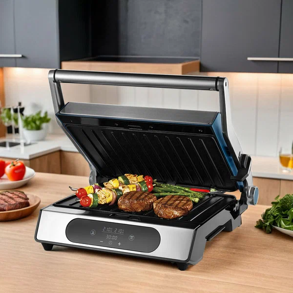 Особенности Крышка, поддон для сбора жира, антипригарное покрытие, съемные пластины, контактный гриль