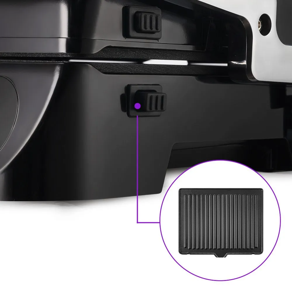 На панели нанесено антипригарное покрытие, что позволит вам готовить с минимальным количеством масла. Такое покрытие также облегчит процесс чистки панелей. Панели электрогриля съёмные, что упрощает уход за прибором.