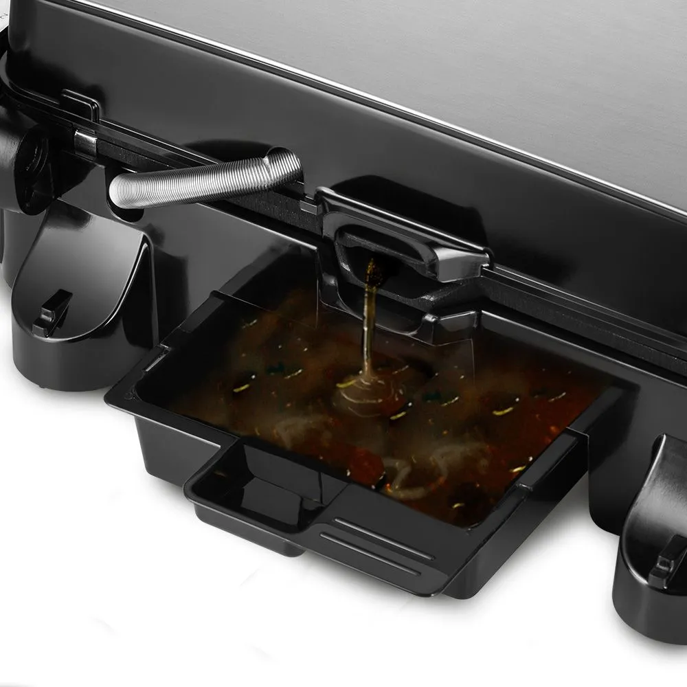 Данная модель электрогриля оснащена поддоном для слива жира и сока, которые выделя¬ются в процессе приготовления продуктов. Все лишнее стечёт в поддон, который можно будет снять и вымыть.