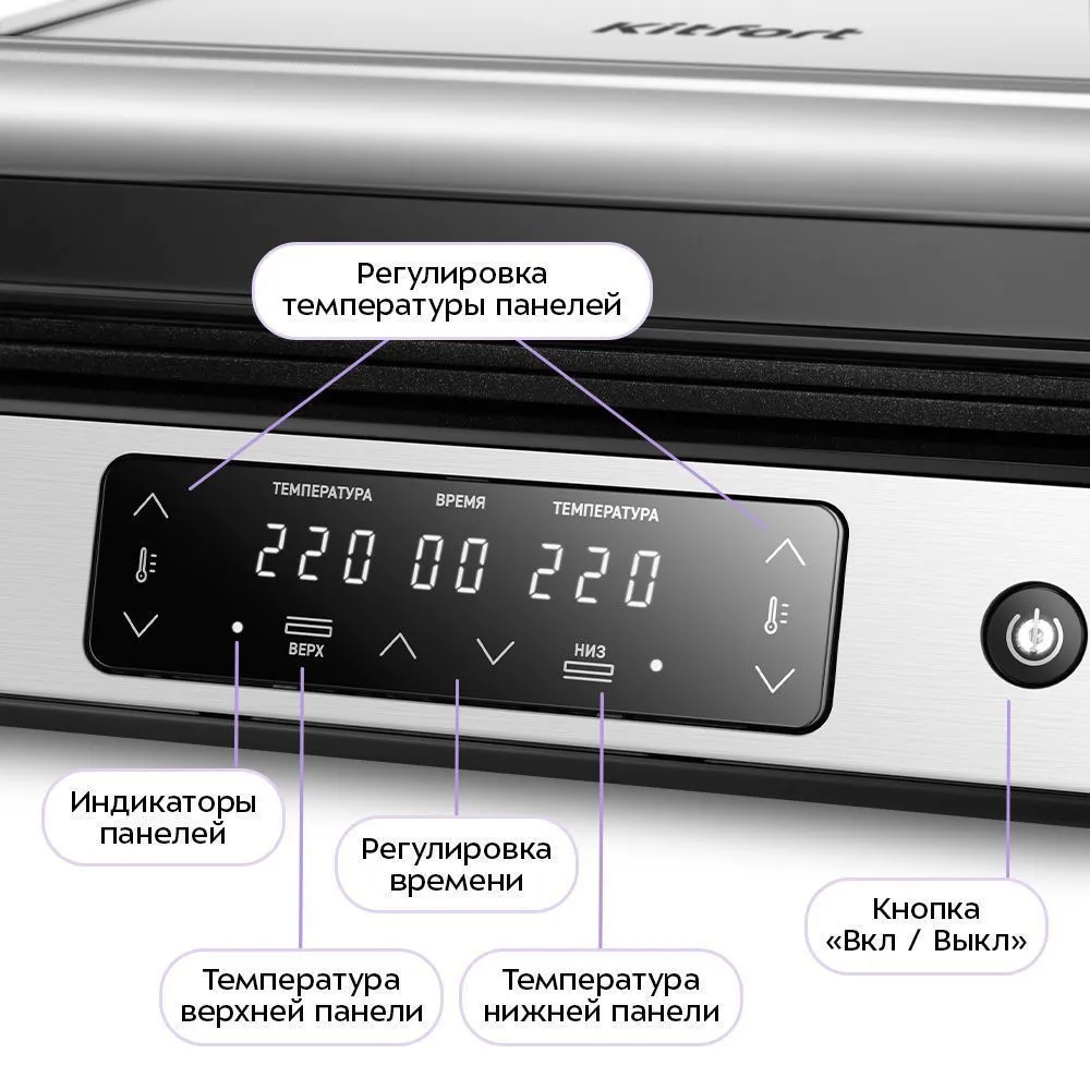 автоматическое отключение, возможность использования верхней панели как самостоятельной, защита от перегрева, регулировка температуры