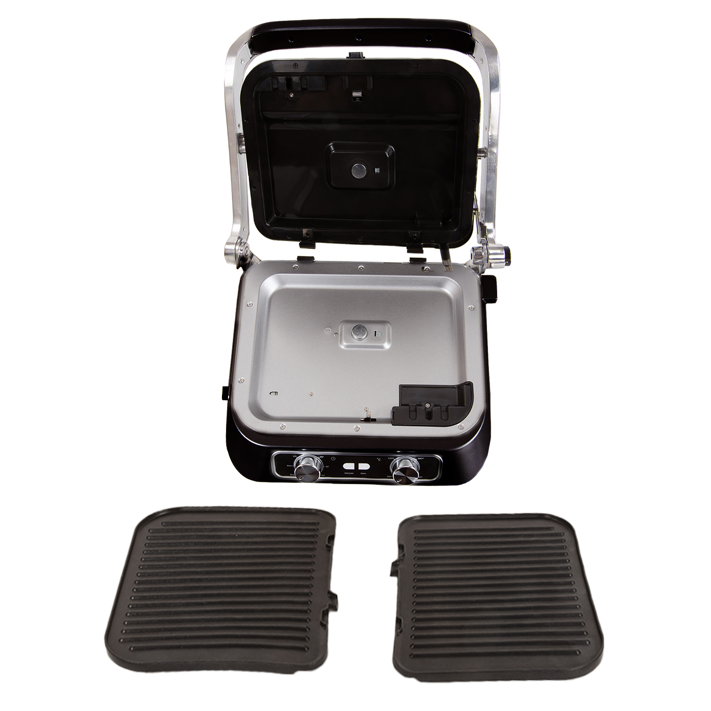 - Комплектация: электрический гриль, 2 съемный панели, поддон для сбора жира, гарантийный талон, инструкция на русском языке