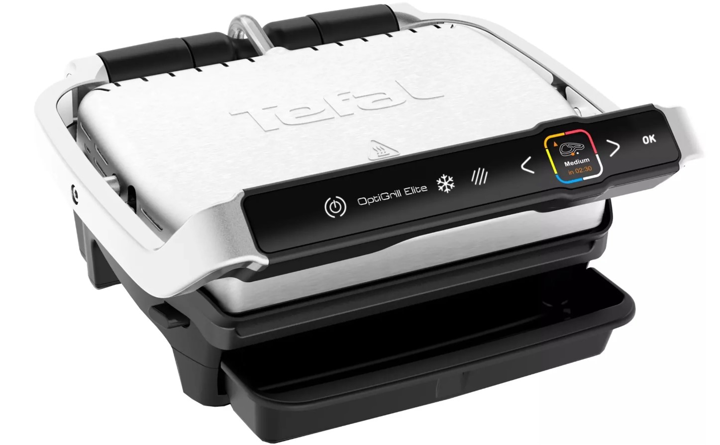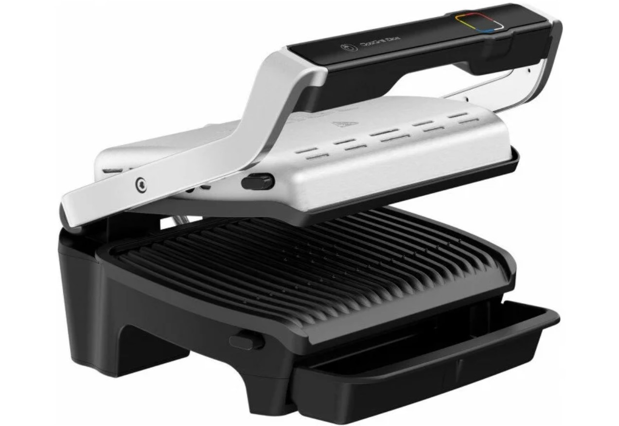антипригарное покрытие, регулировка высоты верхней панели, поддон для сбора жира, контактный гриль