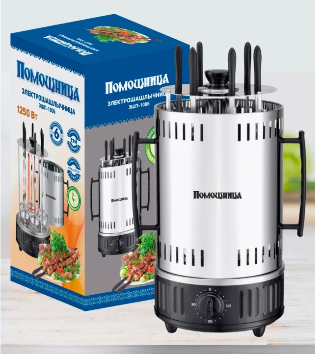Комплектация шашлычница; защитный кожух; Руководство; 6 шампуров; 6 чашей для сбора жира