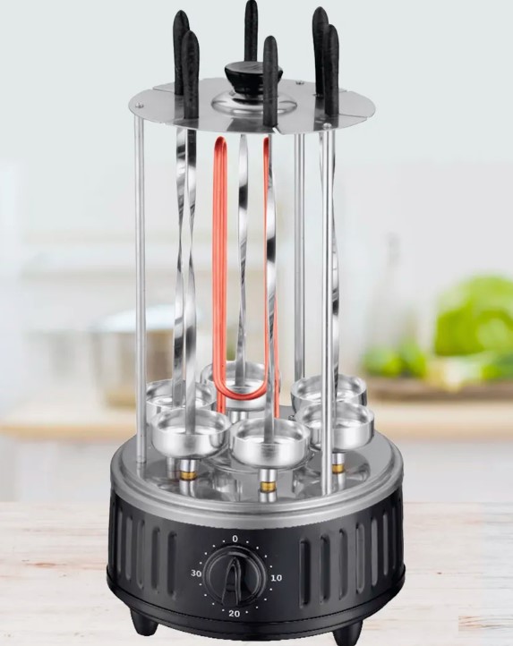 Особенности шашлычницы электрической автоматическое вращение шампуров; поддон для сбора жира; таймер обратного отсчета