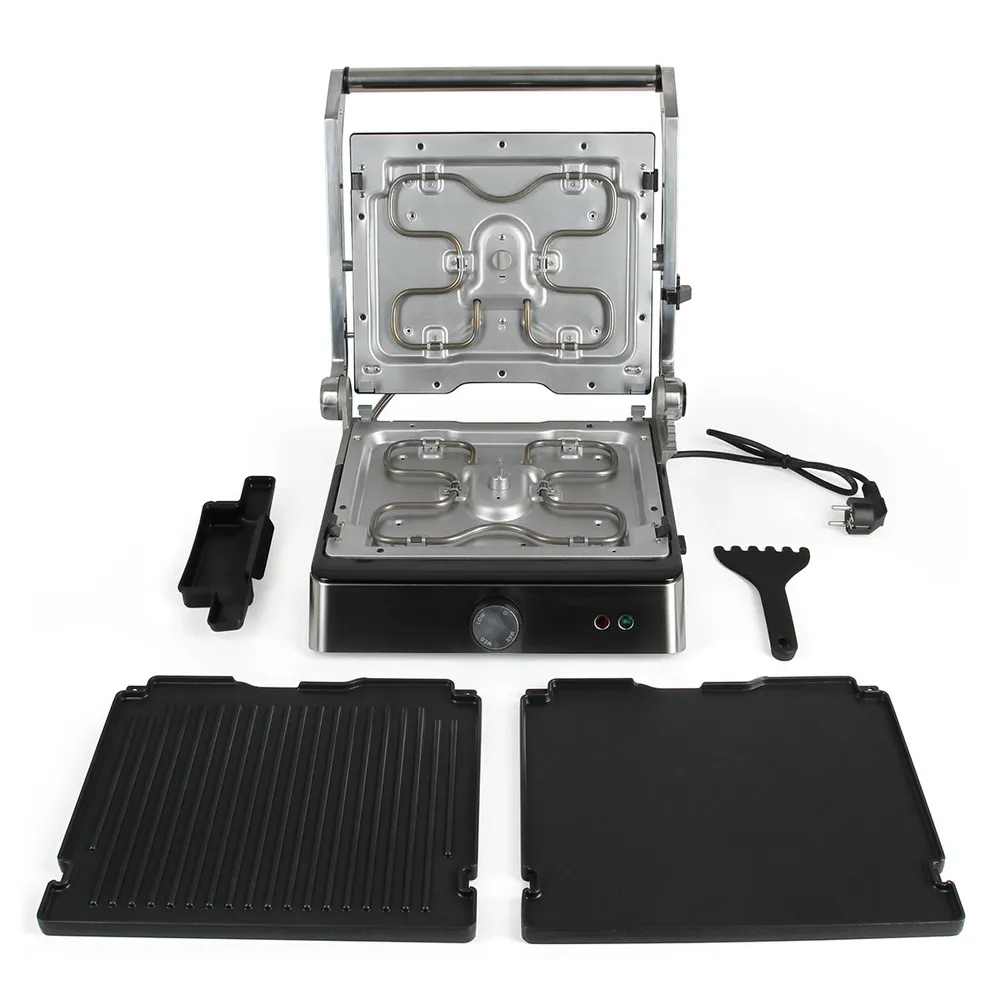 Конструктивные особенности тепловых приборов: Антипригарное покрытие, Раскрытие на 180°, Ручка для переноски, Сменные панели для приготовления