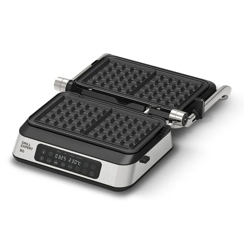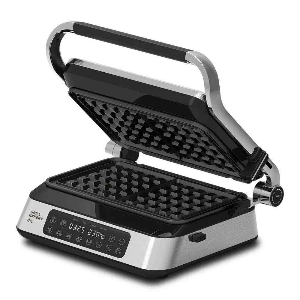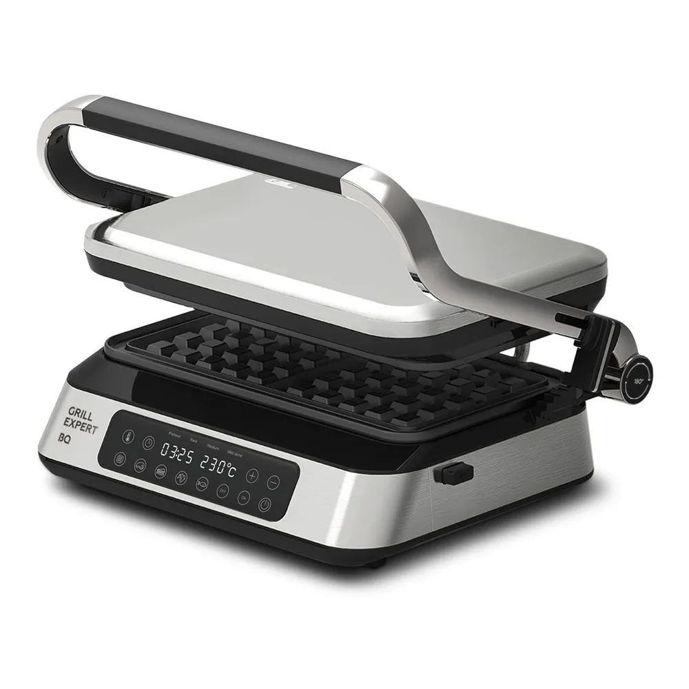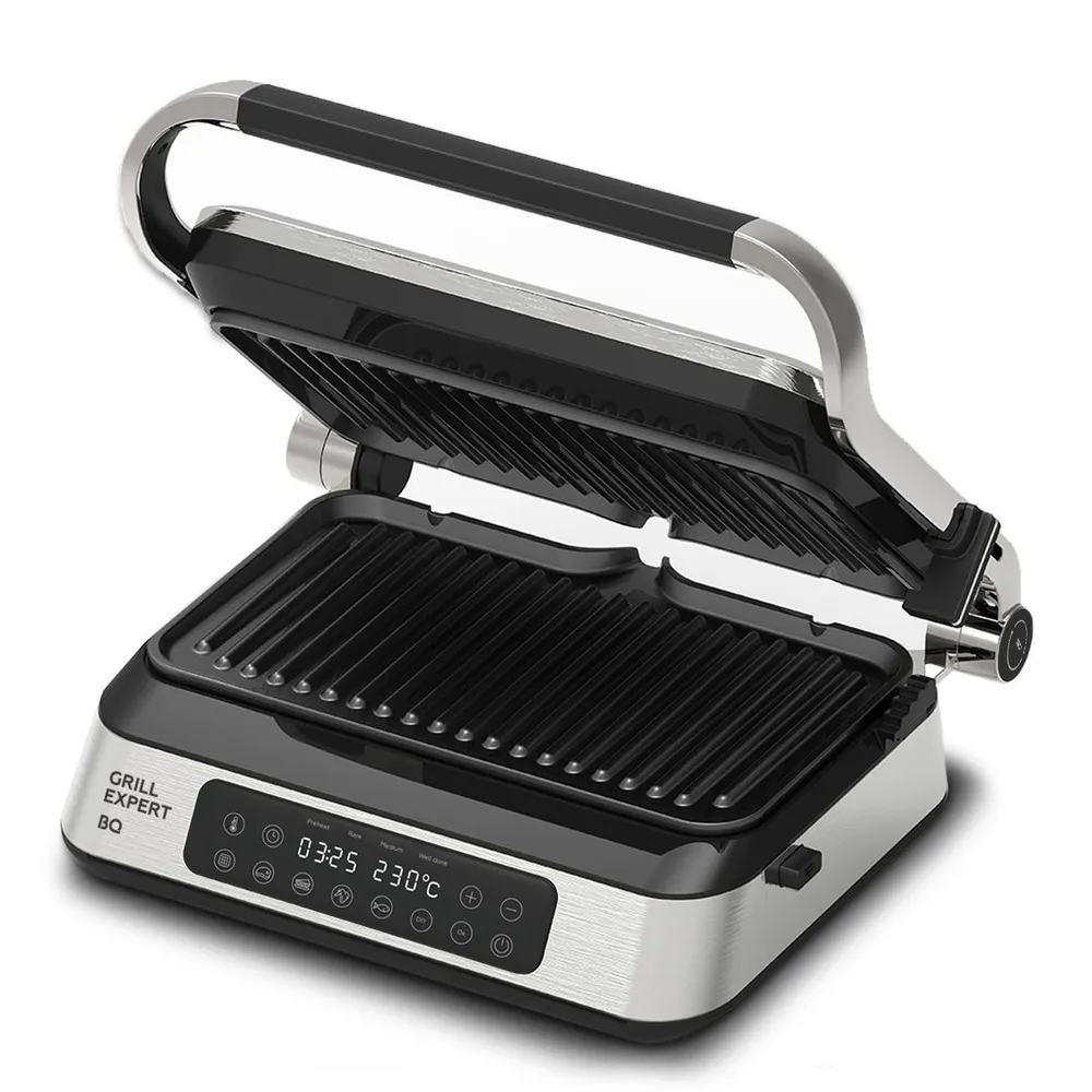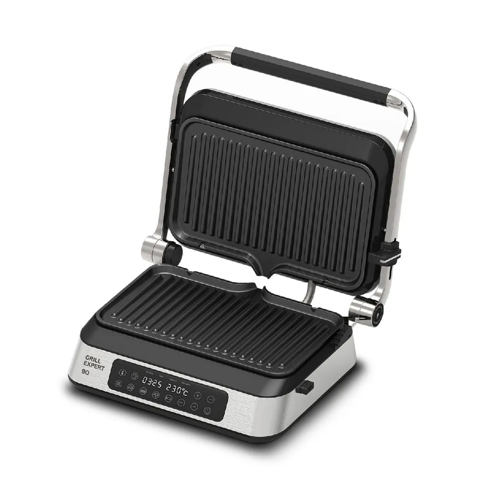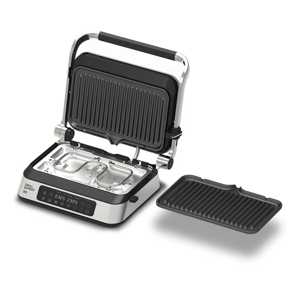 Конструктивные особенности тепловых приборов: Антипригарное покрытие, Поддон для сбора жира, Раскрытие на 180°, Сменные панели для приготовления