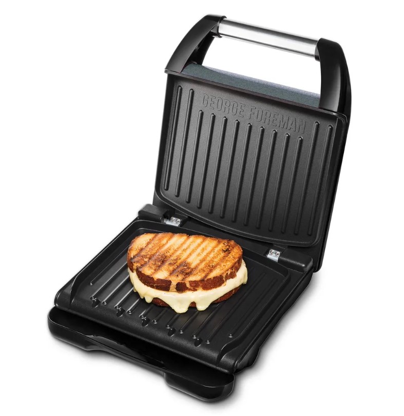 Электрогриль George Foreman 25041-56 имеет принципиально новый дизайн. На его антипригарных пластинах можно приготовить до 5 порций гриля. Имеется поддон для жира и капель с системой фиксации. Есть возможность вертикального хранения и отсек для шнура.