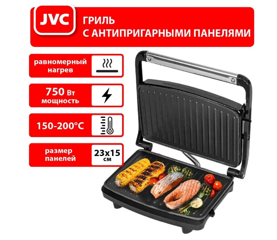 Электрический контактный гриль JVC идеально подойдет для приготовления мяса, овощей, рыбы, горячих бутербродов, тостов и много другого. Гриль отлично подходит для всех, кто стремиться питаться правильно, но не хочет отказывать себе во вкусных блюдах.