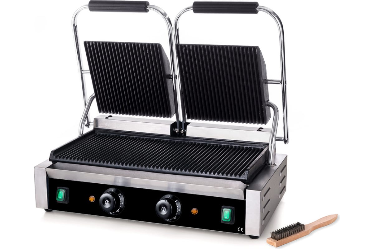 Контактный гриль Viatto GH-813EH 159437 используется в ресторанах, кафе, заведениях быстрого питания для обжаривания мяса, рыбы и овощей, приготовления различных сендвичей.