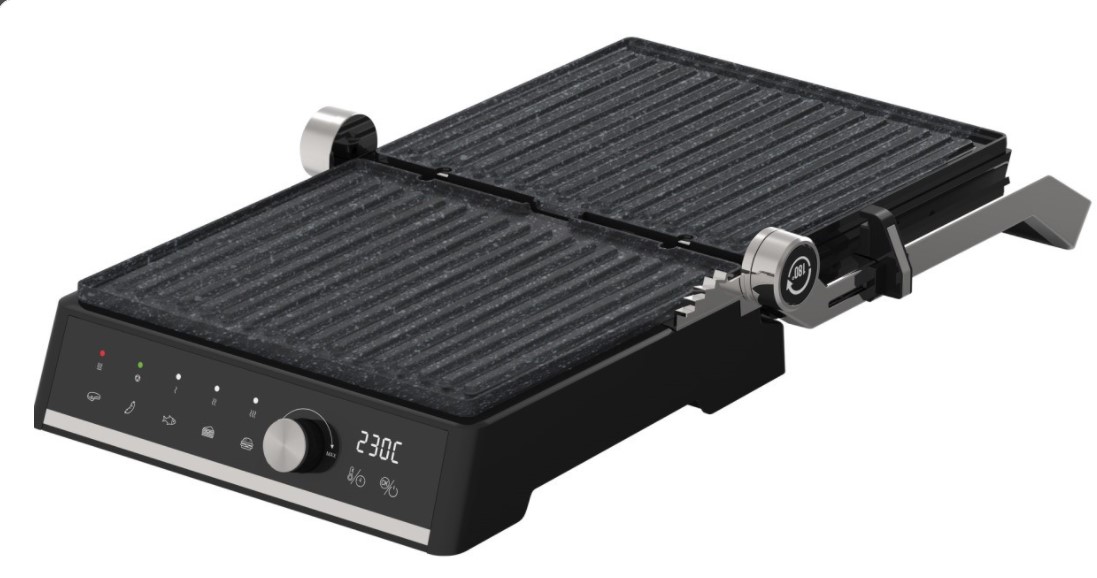 Функции | термостат автоприготовление / 5 программ / съемные пластины подстройка по высоте (шарнир) регулировка высоты верхней пластины открытие на 180° |
