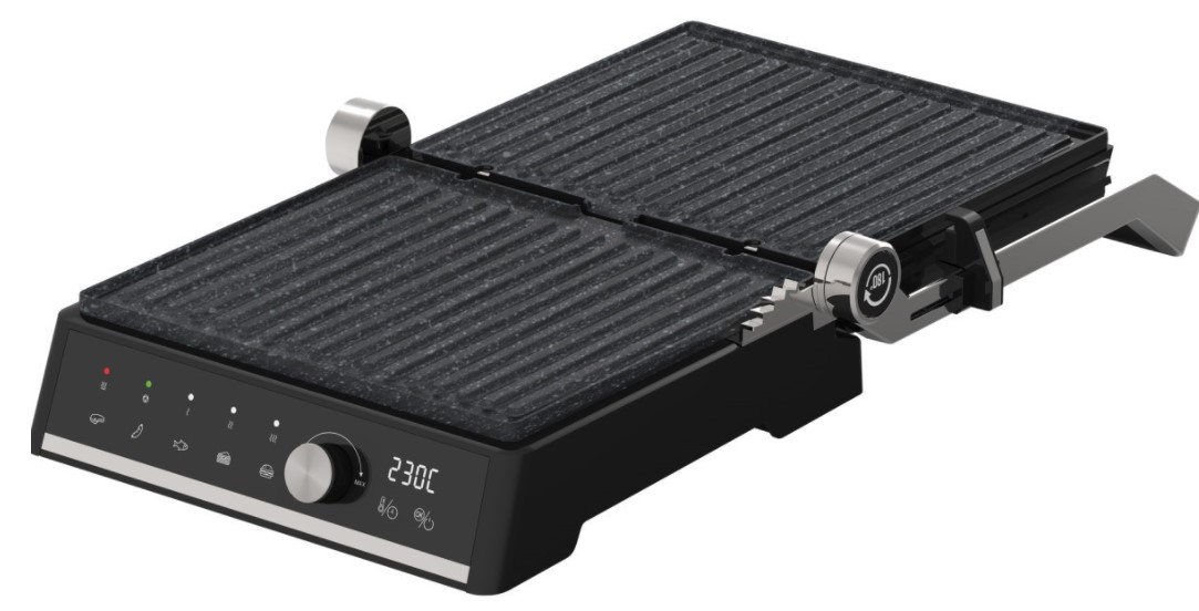 Функции | термостат автоприготовление / 5 программ / съемные пластины подстройка по высоте (шарнир) регулировка высоты верхней пластины открытие на 180° |
