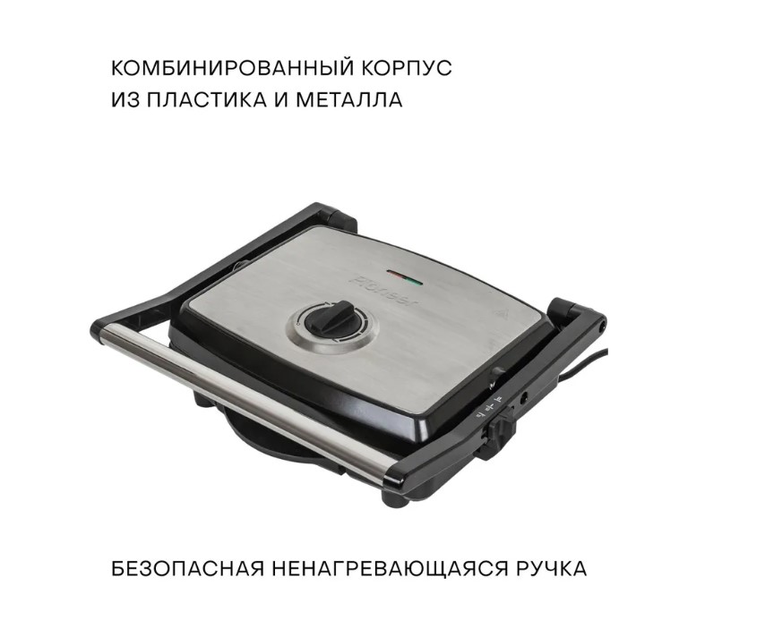Современный гриль электрический Pioneer GR1065E с антипригарным покрытием 5G и регулировкой температуры - идеальное решение для приготовления мясных, рыбных или овощных блюд, блинчиков, яичниц, панини или гренок в домашних условиях. Благодаря тому, что продукты нагреваются с обеих сторон рабочими поверхностями прибора, они готовятся равномерно и в течение короткого времени. За счет рифленых поверхностей жир во время приготовления стекает в специальный контейнер, следовательно приготовление в электрогриле позволяет получить диетическую и полезную для здоровья пищу.