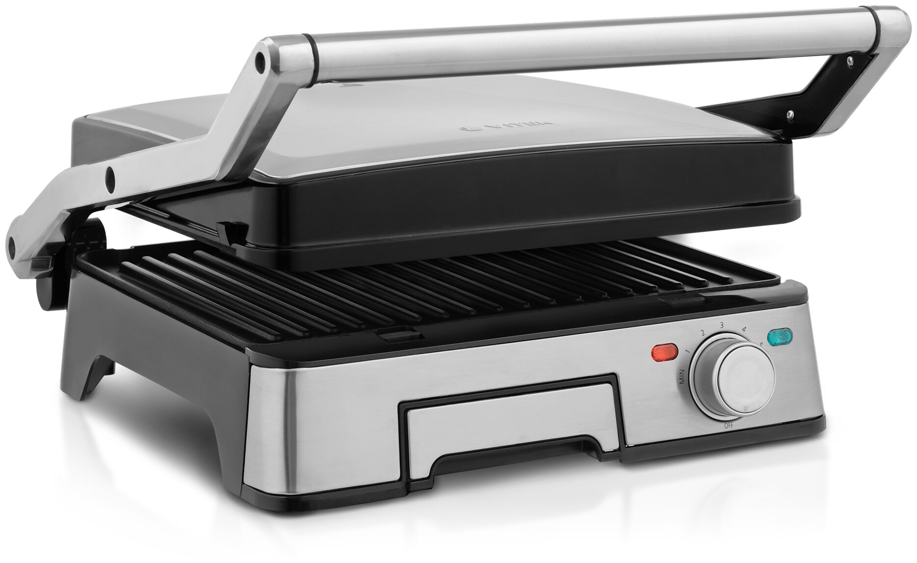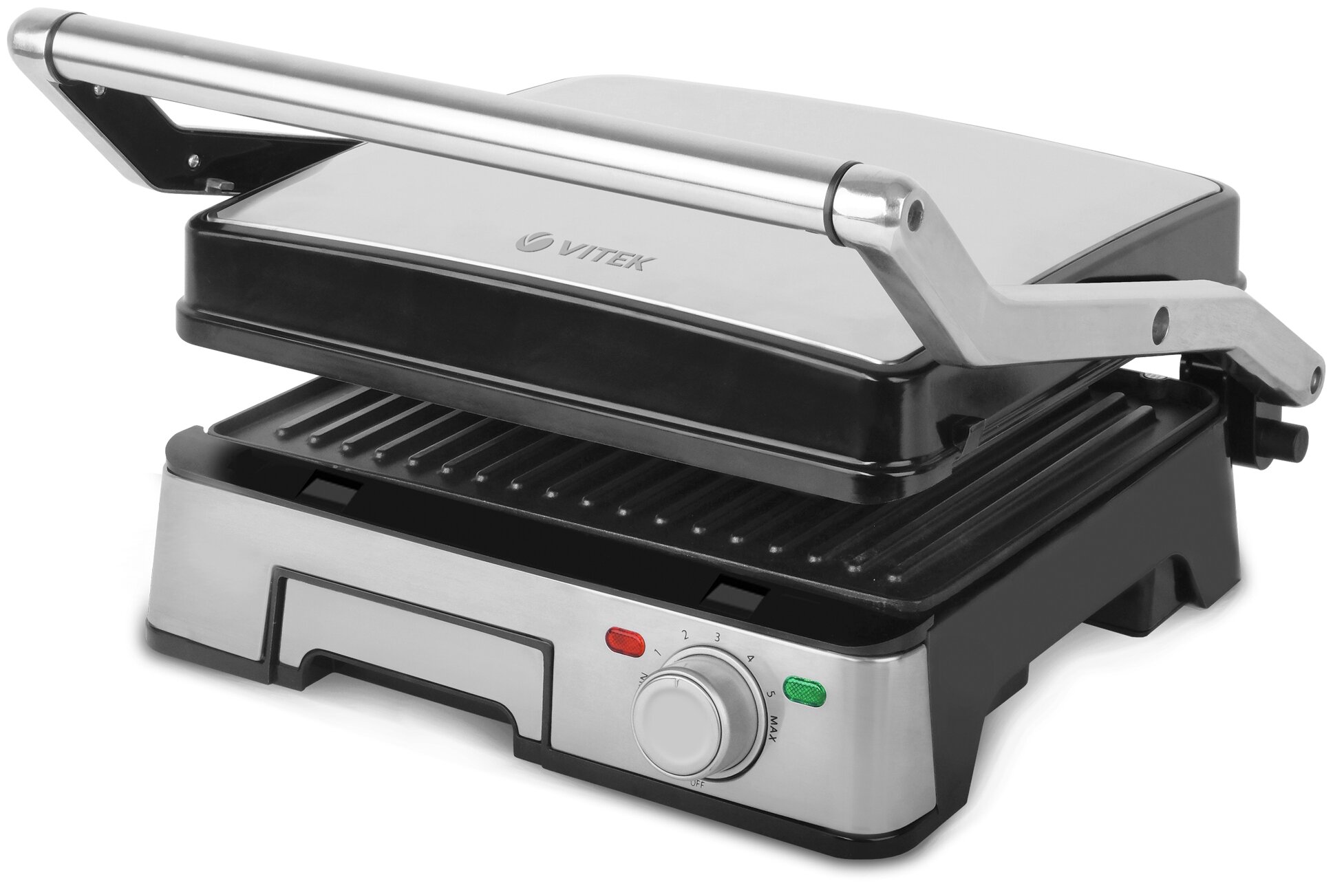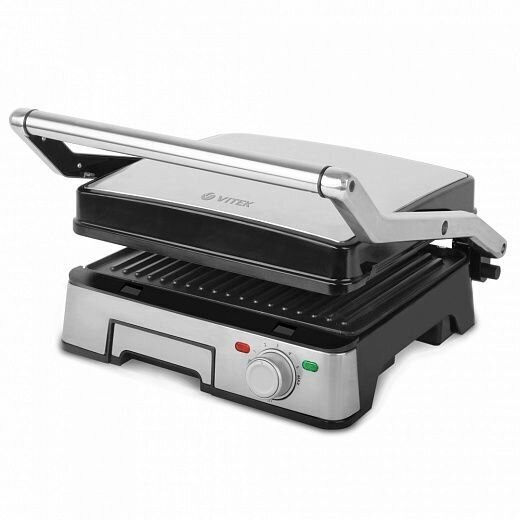 Любите мясо, рыбу или овощи с румяной корочкой? Приготовить их в домашних условиях поможет гриль-пресс VT-8450 в корпусе из нержавеющей стали и высококачественного термостойкого пластика (максимальная мощность — 2000 Вт). Особому комфорту в работе способствует фиксация открытия пластин на 90° и 180° (последнее обеспечивает возможность использования устройства в качестве открытого гриля). Температуру нагрева можно регулировать в зависимости от рецепта или вашего желания: от 70°С до 240°С. Продукты в гриль-прессе готовятся очень быстро, ведь нагревательные элементы расположены и в верхней, и в нижней части прибора. Размер моющихся пластин с антипригарным покрытием (290 х 230 мм) рассчитан на 4 порции. Для особого удобства в эксплуатации в приборе предусмотрен встроенный лоток для сбора масла, поэтому устройство можно смело ставить и на столешницу, и на стол. Купить гриль-пресс VITEK VT-8450 — значит, подарить себе возможность регулярно баловать близких вкусными аппетитными блюдами.