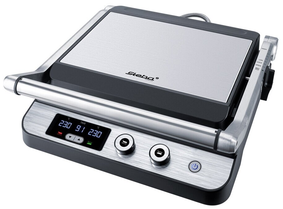 съемные пластины; индивидуальная регулировка температуры до 230° C для верхней и нижней пластины; таймер на 99 минут